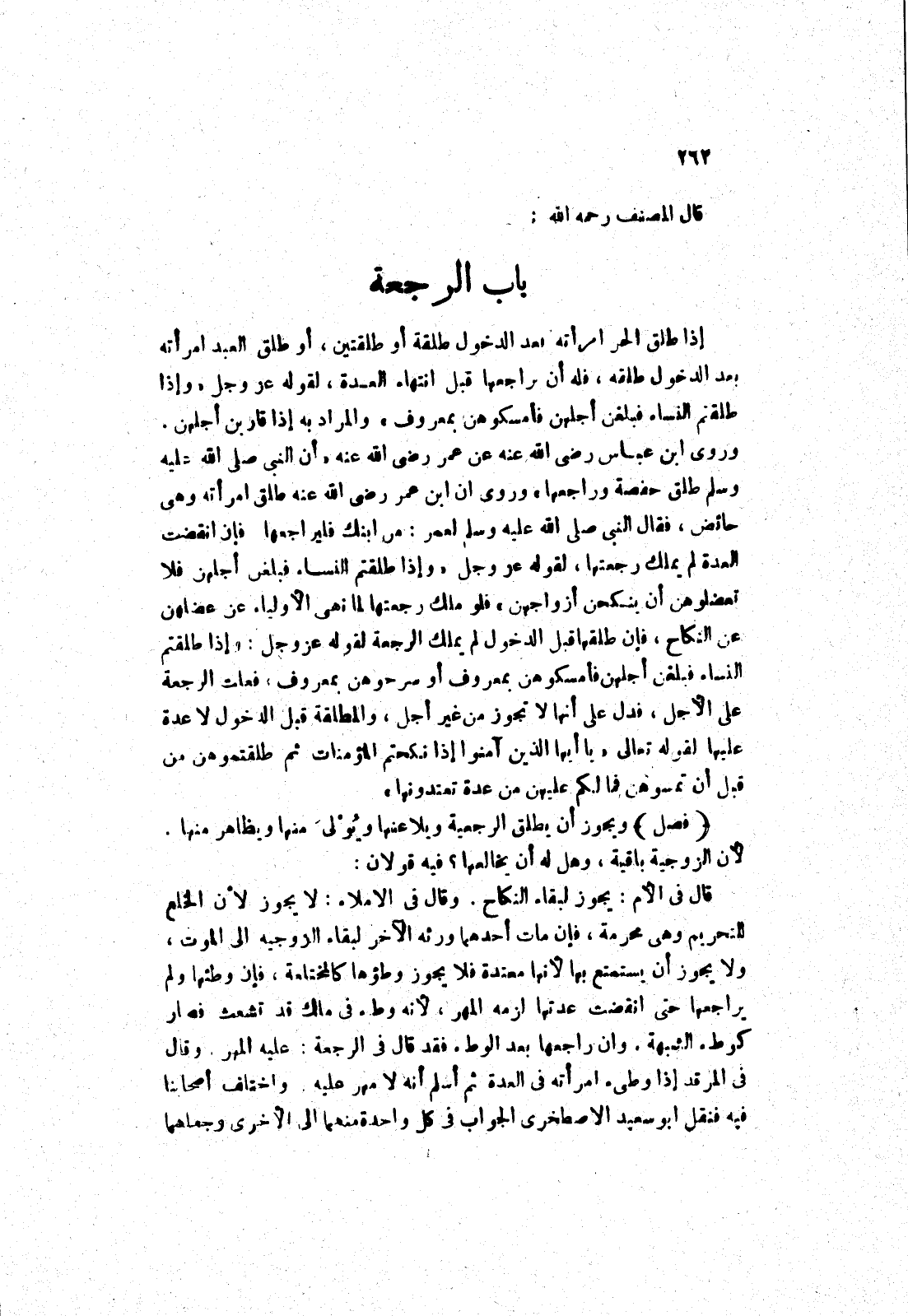 إذا طلق الحر امرأته بعد الدخول طلقة أو طلقتين، أو طلق العبد امرأته بعد الدخول طلقه، فله أن يراجعها قبل انتهاء العدة، لقوله عز وجل " وإذا طلقتم النساء فبلغن أجلهن فأمسكوهن بمعروف " والمراد به إذا قاربن أجلهن.