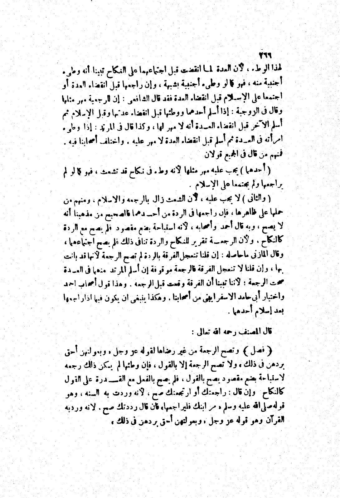 لا يجب عليه، لان الشعث زال بالرجعة والاسلام، ومنهم من حملها على ظاهرها، فإن راجعها في الردة من أحدهما فالصحيح من مذهبنا أنه لا يصح، وبه قال أحمد وأصحابه، لانه استباحة بضع مقصود فلم يصح مع الردة كالنكاح، ولان الرجعة تقرير للنكاح والردة تنافى ذلك فلم يصح اجتماعهما، وقال المازنى ما حاصله: إن قلنا تتعجل الفرقة بالردة لم تصح الرجعة لانها قد بانت بها، وإن قلنا لا تتعجل الفرقة فالرجعة موقوفة إن أسلم المرتد منهما في العدة صحت الرجعة: لاننا تبينا أن الفرقة وقعت قبل الرجعة.