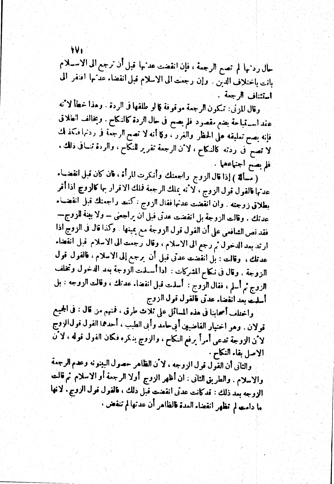 ويخالف الطلاق فإنه يصح تعليقه على الحظر والغرر، وكما أنه لا تصح الرجعة في ردتها فكذلك لا تصح في ردته كالنكاح، لان الرجعة تقرير للنكاح، والردة تنافى ذلك، فلم يصح اجتماعهما.