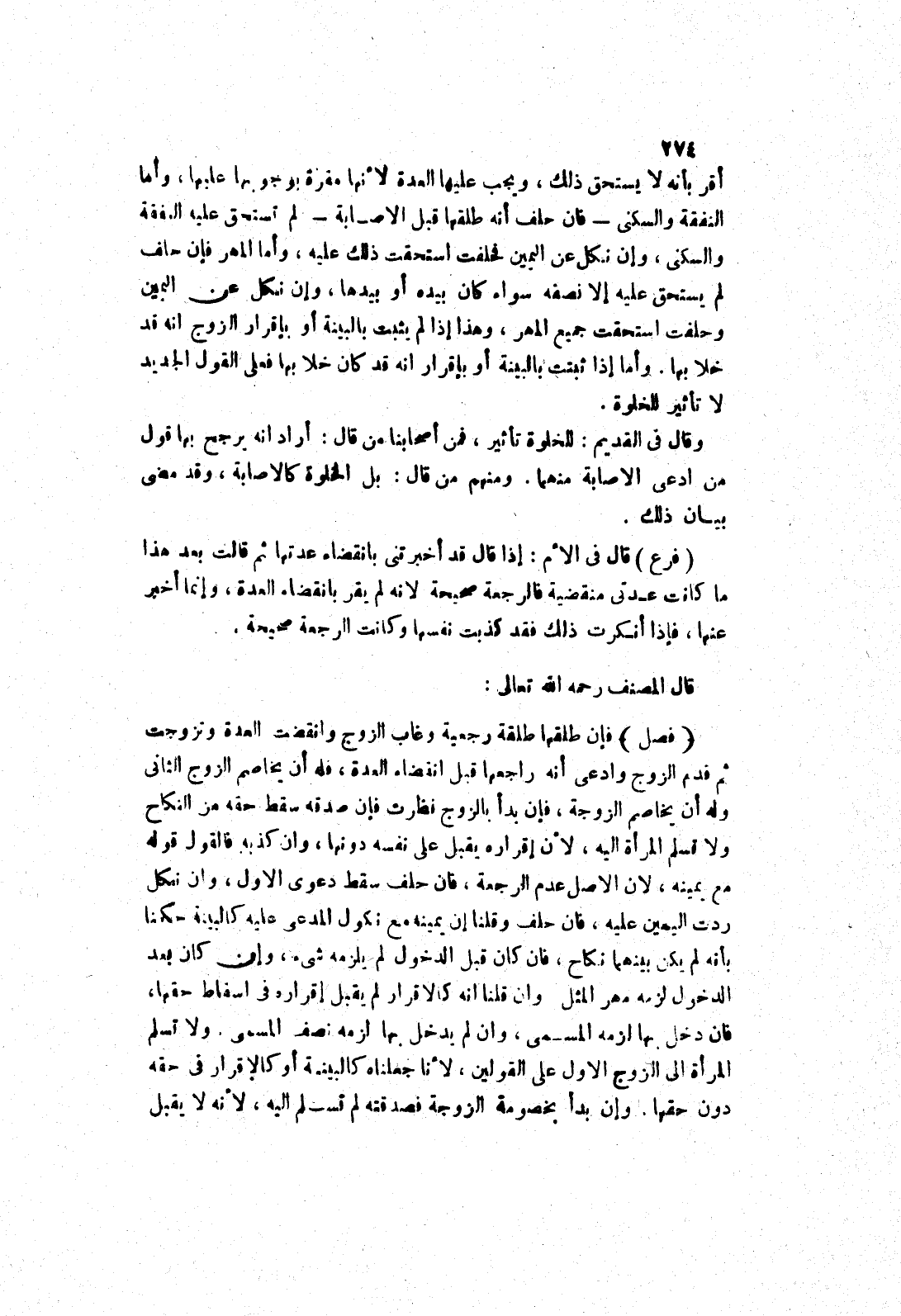 فإن طلقها طلقة رجعية وغاب الزوج وانقضت العدة وتزوجت ثم قدم الزوج وادعى أنه راجعها قبل انقضاء العدة، فله أن يخاصم الزوج الثاني وله أن يخاصم الزوجة، فإن بدأ بالزوج نظرت فإن صدقه سقط حقه من النكاح ولا تسلم المرأة إليه، لان إقراره يقبل على نفسه دونها، وان كذبه فالقول قوله مع يمينه، لان الاصل عدم الرجعة، فان حلف سقط دعوى الاول، وان نكل ردت اليمين عليه، فان حلف وقلنا إن يمينه مع نكول المدعى عليه كالبينة حكمنا بأنه لم يكن بينهما نكاح، فان كان قبل الدخول لم يلزمه شئ، وإن كان بعد الدخول لزمه مهر المثل وان قلنا انه كالاقرار لم يقبل إقراره في اسقاط حقها، فان دخل بها لزمه المسمى، وان لم يدخل بها لزمه نصف المسمى.