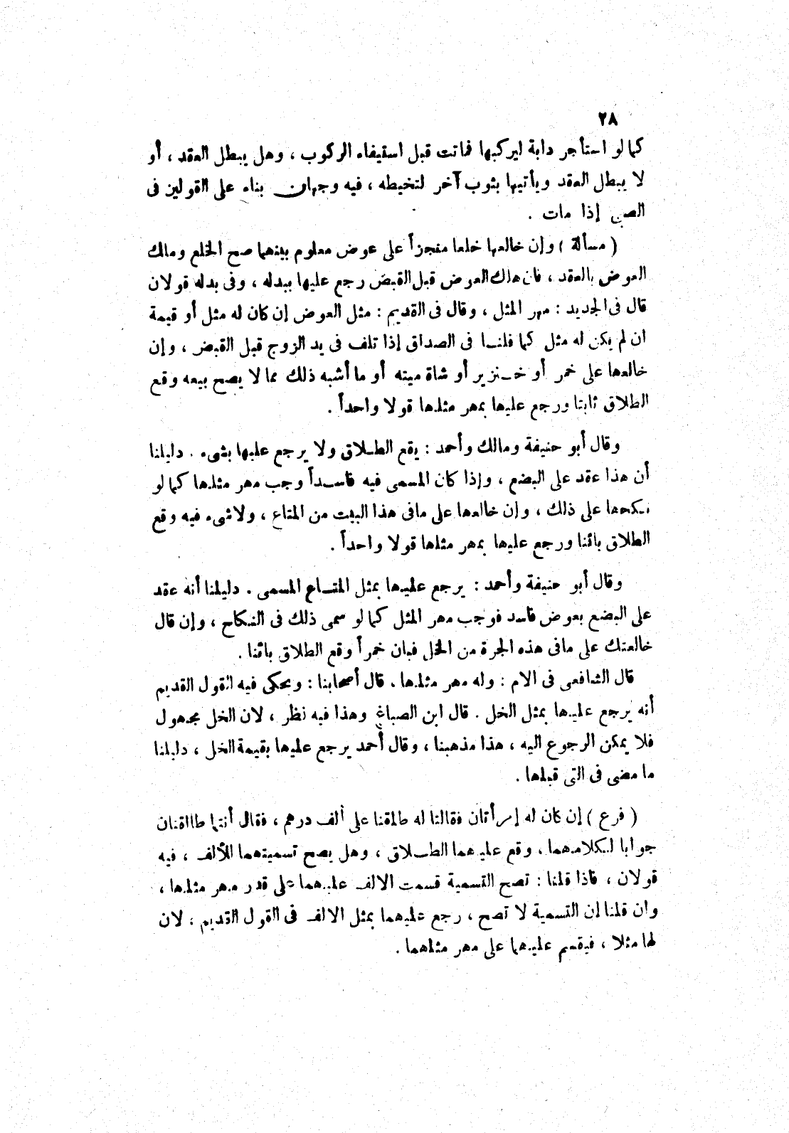 دليلنا أنه عقد على البضع بعوض فاسد فوجب مهر المثل كما لو سمى ذلك في النكاح، وإن قال خالعتك على ما في هذه الجرة من الخل فبان خمرا وقع الطلاق بائنا.