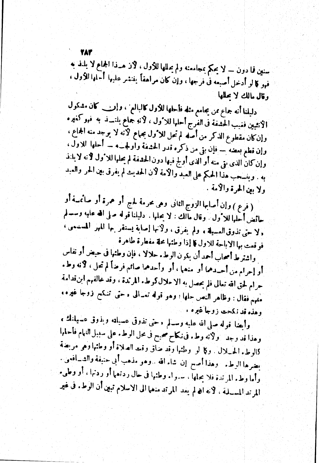 سنين فما دون - لا يحكم بمجامعته ولم يحللها للاول، لان هذا الجماع لا يلتذ به فهو كما لو أدخل أصبعه في فرجها، وإن كان مراهقا ينتشر عليها أحلها للاول، وقال مالك لا يحللها دليلنا أنه جماع ممن يجامع مثله فأحلها للاول كالبالغ، وإن كان مشكول الانثيين فغيب الحشفة في الفرج أحلها للاول، لانه جماع يلتذ به فهو كغيره وإن كان مقطوع الذكر من أصله لم تحل للاول بجماع لانه لا يوجد منه الجماع، وإن قطع بعضه - فإن بقى من ذكره قدر الحشفة واولجه - أحلها للاول، وإن كان الذى بقى منه أو الذى أولج فيها دون الحشفة لم يحلها للاول لانه لا يلتذ به.