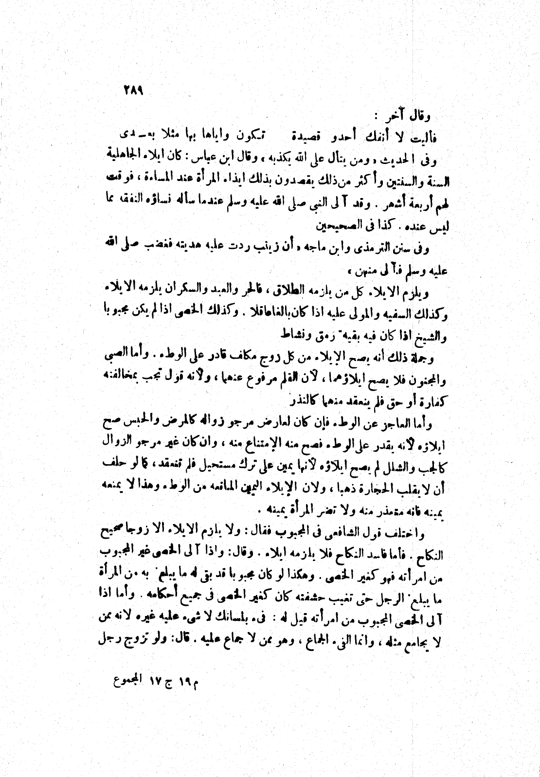 واختلف قول الشافعي في المجبوب فقال: ولا يلزم الايلاء الا زوجا صحيح النكاح.