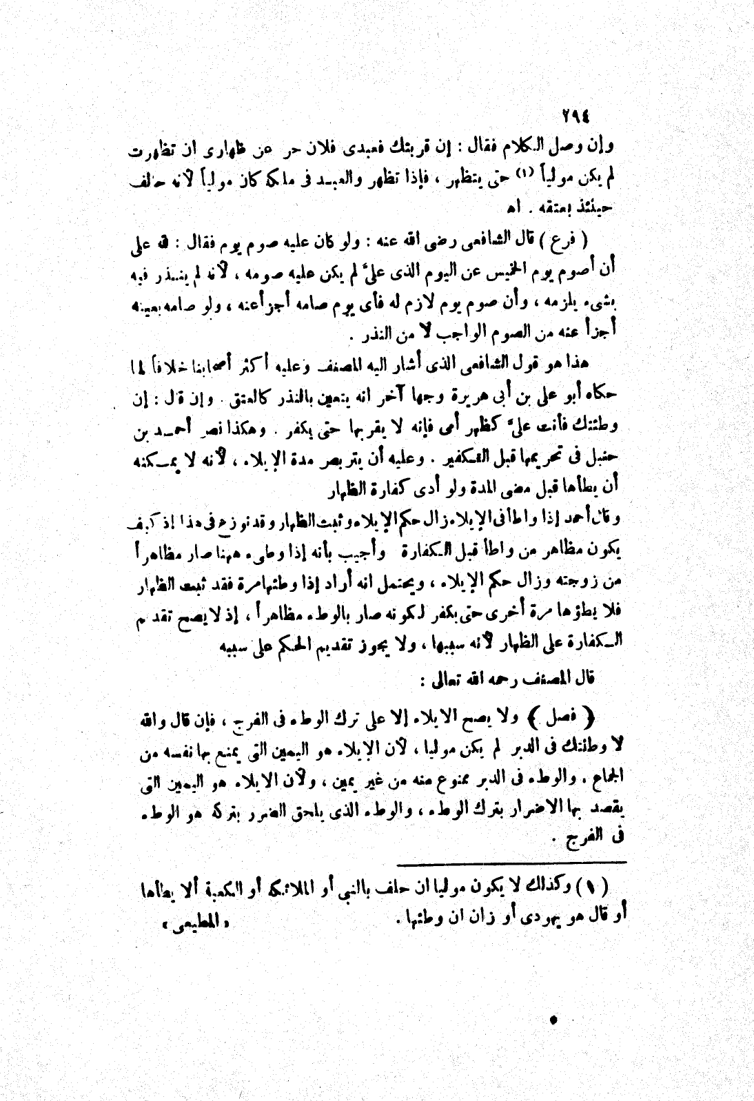 ولا يصح الايلاء إلا على ترك الوطئ في الفرج، فإن قال والله لا وطئتك في الدبر لم يكن موليا، لان الايلاء هو اليمين التى يمنع بها نفسه من الجماع، والوطئ في الدبر ممنوع منه غير يمين، ولان الايلاء هو اليمين التى يقصد بها الاضرار بترك الوطئ، الذى يلحق الضرر بتركه هو الوطئ في الفرج.