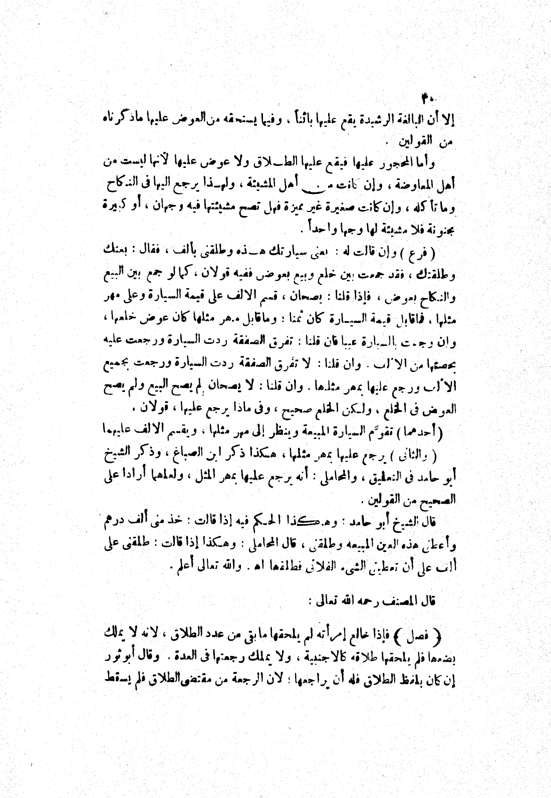 إلا أن البالغة الرشيدة يقع عليها بائنا، وفيما يستحقه من العوض عليها ما ذكرناه من القولين.