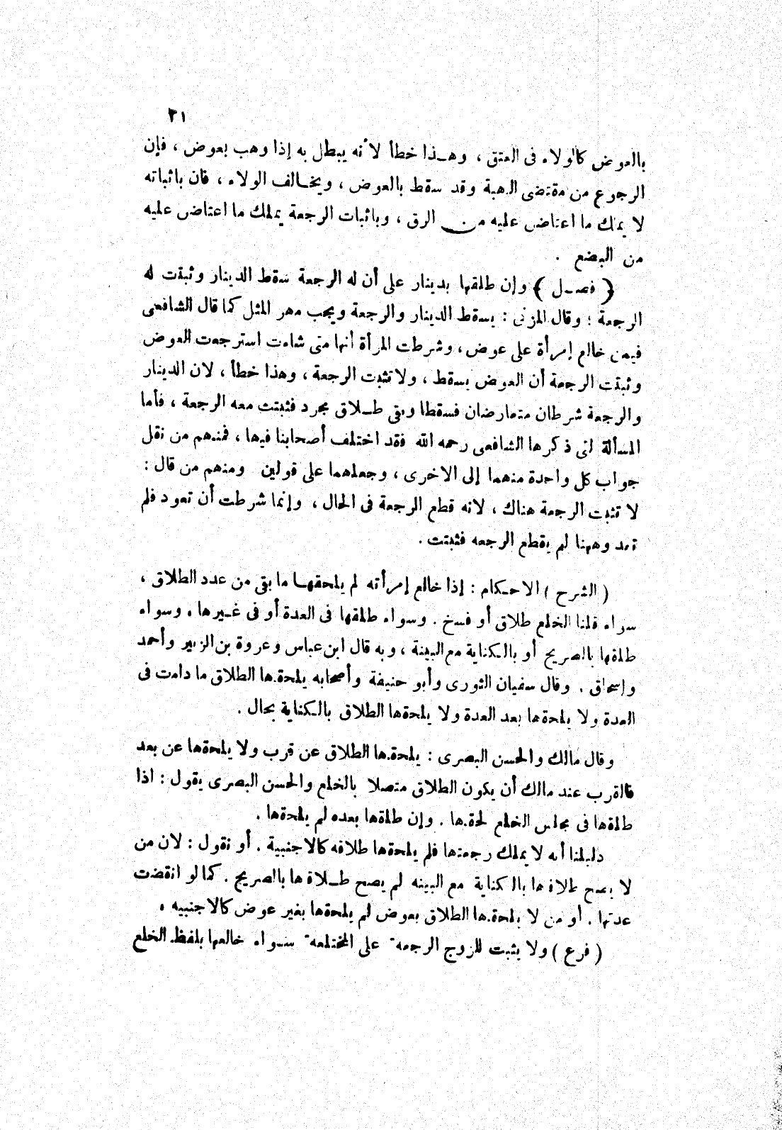 (الشرح) الاحكام: إذا خالع إمرأته لم يلحقها ما بقى من عدد الطلاق، سواء قلنا الخلع طلاق أو فسخ.