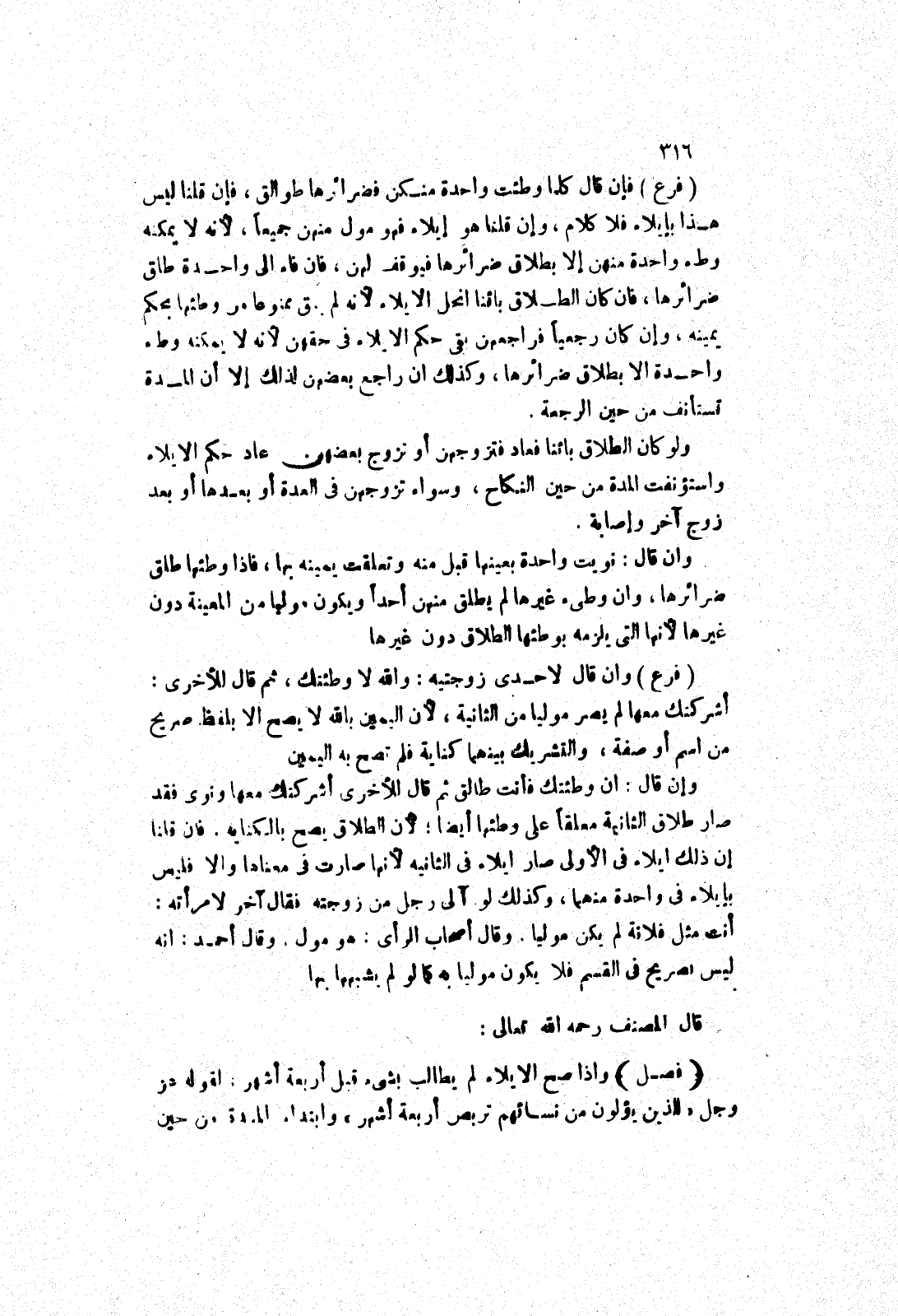 فان قلنا إن ذلك ايلاء في الاولى صار ايلاء في الثانية لانها صارت في معناها والا فليس بإيلاء في واحدة منهما، وكذلك لو آلى رجل من زوجته فقال آخر لامرأته: أنت مثل فلانه لم يكن موليا.
