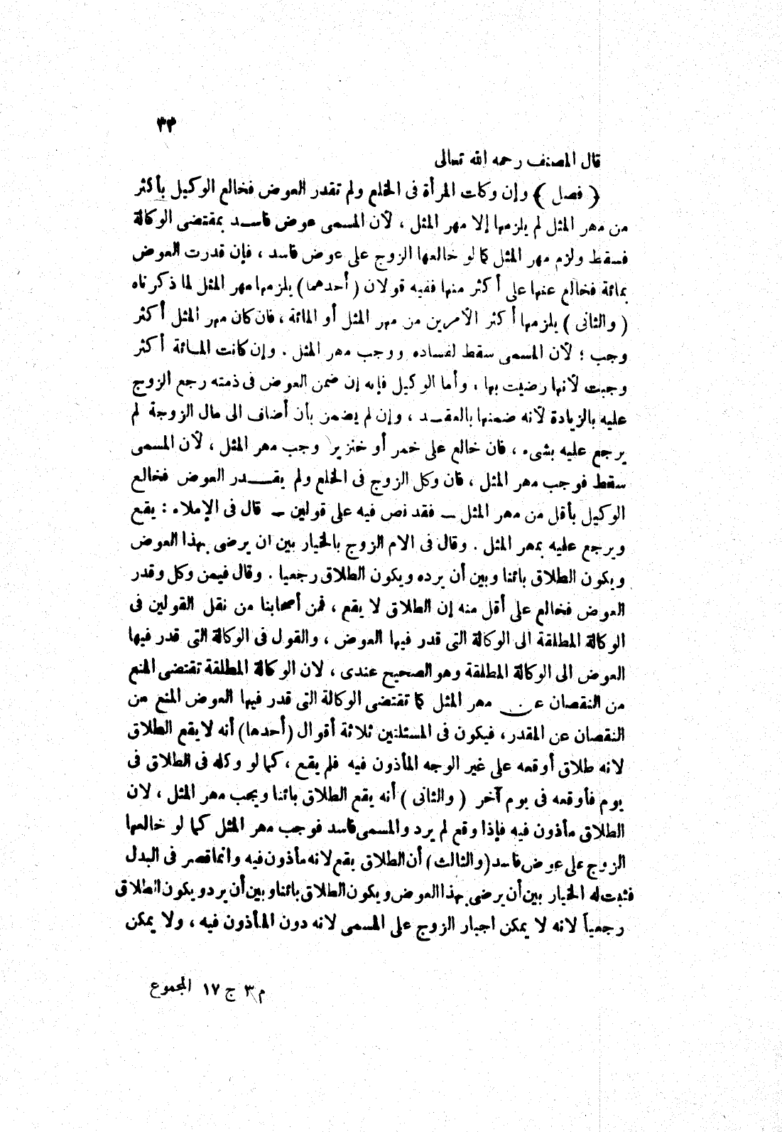 وقال فيمن وكل وقدر العوض فخالع على أقل منه إن الطلاق لا يقع، فمن أصحابنا من نقل القولين في الوكالة المطلقة إلى الوكالة التى قدر فيها العوض، والقول في الوكالة التى قدر فيها العوض إلى الوكالة المطلقة وهو الصحيح عندي، لان الوكالة المطلقة تقتضي المنع من النقصان عن مهر المثل كما تقتضي الوكالة التى قدر فيها العوض المنع من النقصان عن المقدر، فيكون في المسئلتين ثلاثة أقوال (أحدها) أنه لا يقع الطلاق لانه طلاق أوقعه على غير الوجه المأذون فيه فلم يقع، كما لو وكله في الطلاق في يوم فأوقعه في يوم آخر