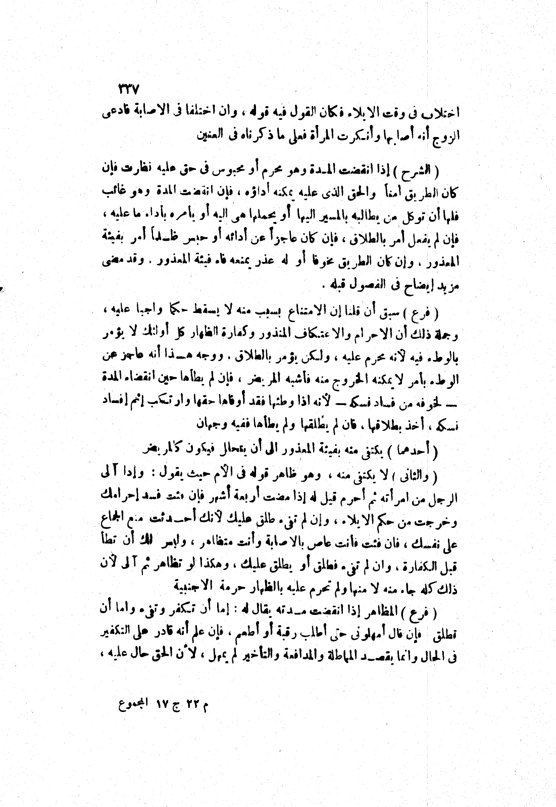 سبق أن قلنا إن الامتناع بسبب منه لا يسقط حكما واجبا عليه، وجملة ذلك أن الاحرام والاعتكاف المنذور وكفارة الظهار كل أولئك لا يؤمر بالوطئ فيه لانه محرم عليه، ولكن يؤمر الطلاق.