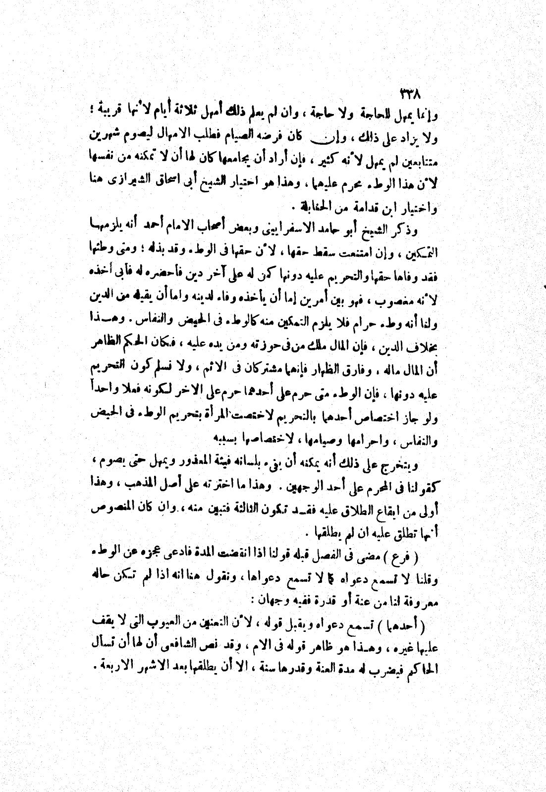 وإنما يمهل للحاجة ولا حاجة، وان لم يعلم ذلك أمهل ثلاثة أيام لانه قريبة، ولا يزاد على ذلك، وإن كان فرضه الصيام فطلب الامهال ليصوم شهرين متتابعين لم يمهل لانه كثير، فإن أراد أن يجامعها كان لها أن لا تمكنه من نفسها لان هذا الوطئ محرم عليهما، وهذا هو اختيار الشيخ أبى اسحاق الشيرازي هنا واختيار ابن قدامة من الحنابلة.