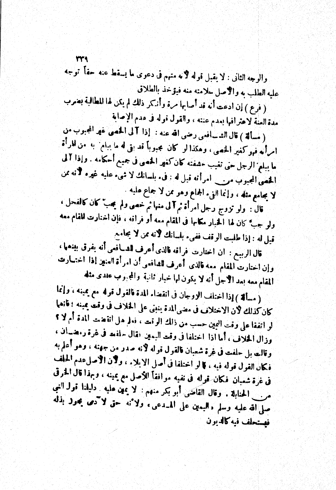 قال: ولو تزوج رجل امرأته ثم آلى منها ثم خصى ولم يجب كان كالفحل، ولو جب كان لها الخيار مكانها في المقام المقام معه أو فراقه، فإن اختارت المقام معه قيل له: إذا طلبت الوقف ففئ بلسانك لانه ممن لا يجامع قال الربيع: ان اختارت فراقه فالذي أعرف للشافعي أنه يفرق بينهما، وإن اختارت المقام معه فالذي أعرف للشافعي أن امرأة العنين إذا اختارت المقام معه بعد الاجل أنه لا يكون لها خيار ثانية والمجبوب عندي مثله (مسألة) إذا اختلف الزوجان في انقضاء المدة فالقول قوله مع يمينه، وإنما كان كذلك لان الاختلاف في مضى المدة ينبنى على الخلاف في وقت يمينه، فانهما لو اتفقا على وقت اليمين حسب من ذلك الوقت، فعلم هل انقضت المدة أم لا؟ وزال الخلاف، أما إذا اختلفا في وقت اليمين فقال حلفت في غرة رمضان، وقالت بل حلفت في غرة شعبان فالقول قوله لانه صدر من جهته، وهو أعلم به فكان القول قوله فيه، كما لو اختلفا في أصل الايلاء.