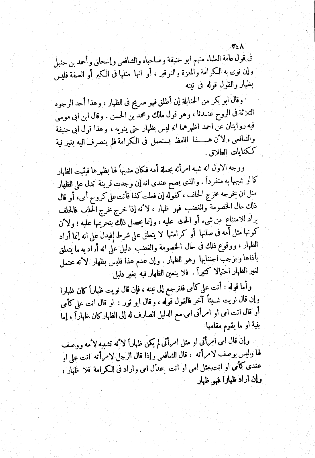 وقال ابن ابى موسى فيه روايتان عن احمد اظهرهما انه ليس بظهار حتى ينويه، وهذا قول ابى حنيفة والشافعي، لان هذا اللفظ يستعمل في الكرامة فلم ينصرف إليه بغير نية ككنايات الطلاق.