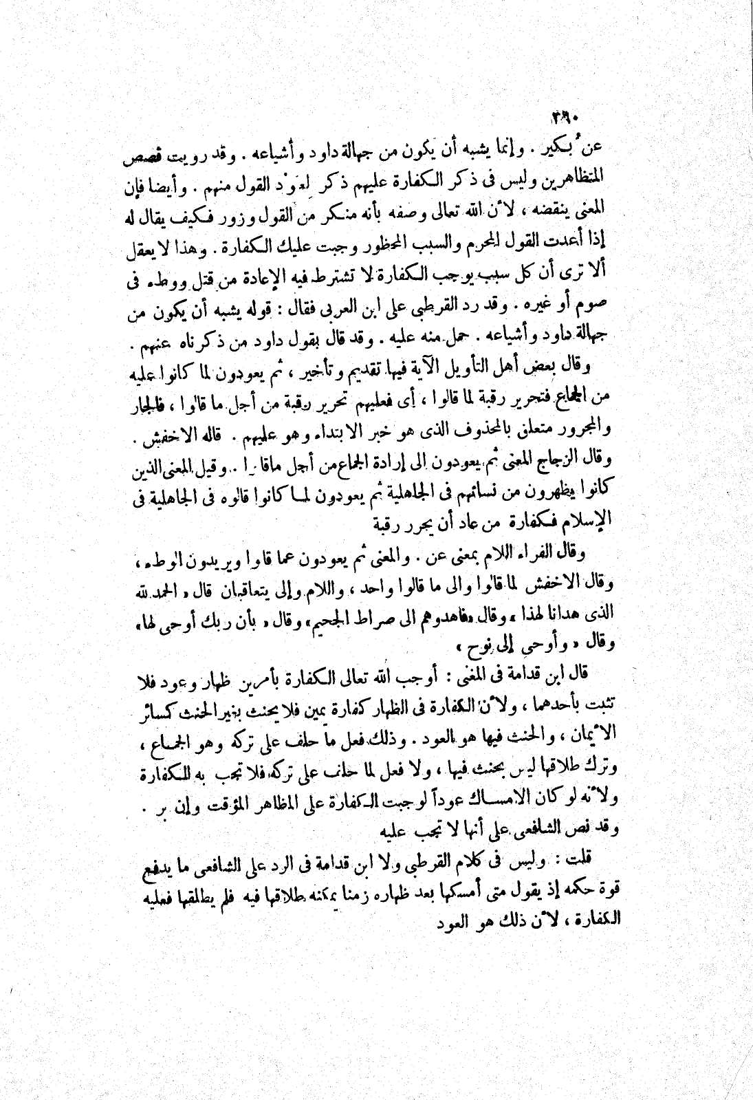 وقد نص الشافعي على أنها لا تحب عليه قلت: وليس في كلام القرطبى ولا ابن قدامة في الرد على الشافعي ما يدفع قوة حكمه إذ يقول متى أمسكها بعد ظهاره زمنا يمكنه طلاقها فيه فلم يطلقها فعليه الكفارة، لان ذلك هو العود