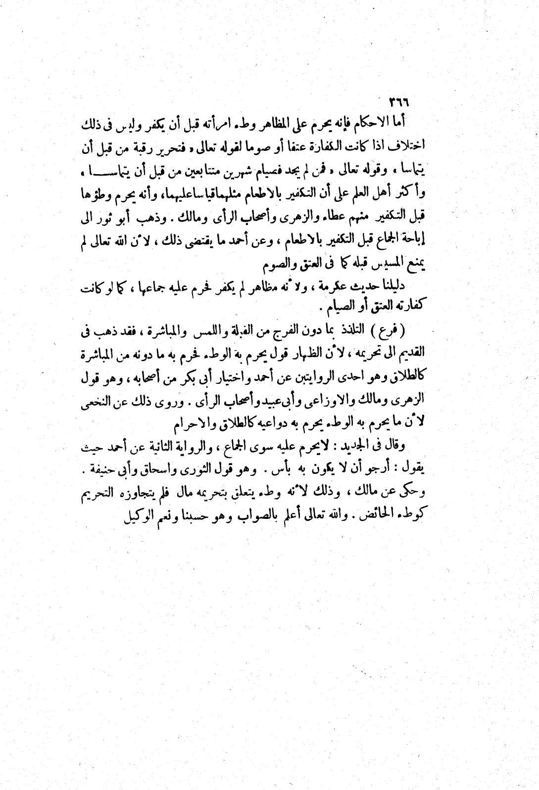 وذهب أبو ثور إلى إباحة الجماع قبل التكفير بالاطعام، وعن أحمد ما يقضى ذلك، لان الله تعالى لم يمنع المسيس قبله كما في العتق والصوم دليلنا حديث عكرمة، ولانه مظاهر لم يكفر فحرم عليه جماعها، كما لو كانت كفارته العتق أو الصيام.