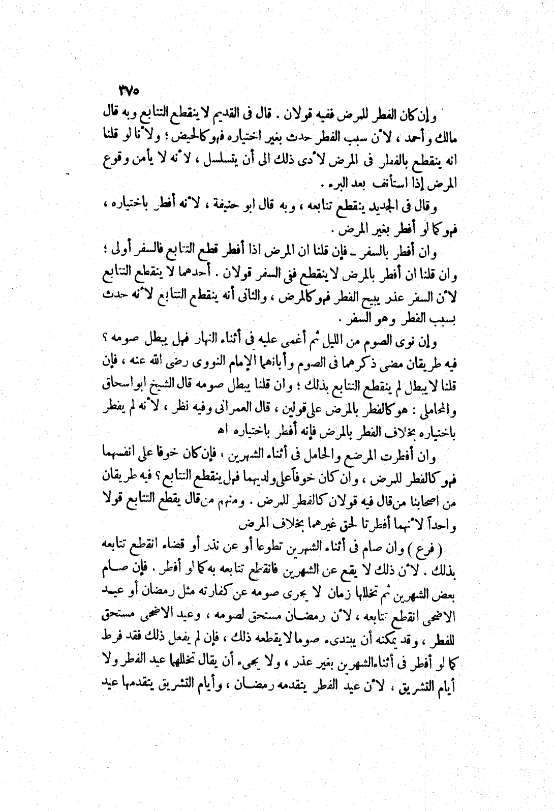 انه ينقطع بالفطر في المرض لادى ذلك إلى أن يتسلسل، لانه لا يأمن وقوع المرض إذا استأنف بعد البرء.