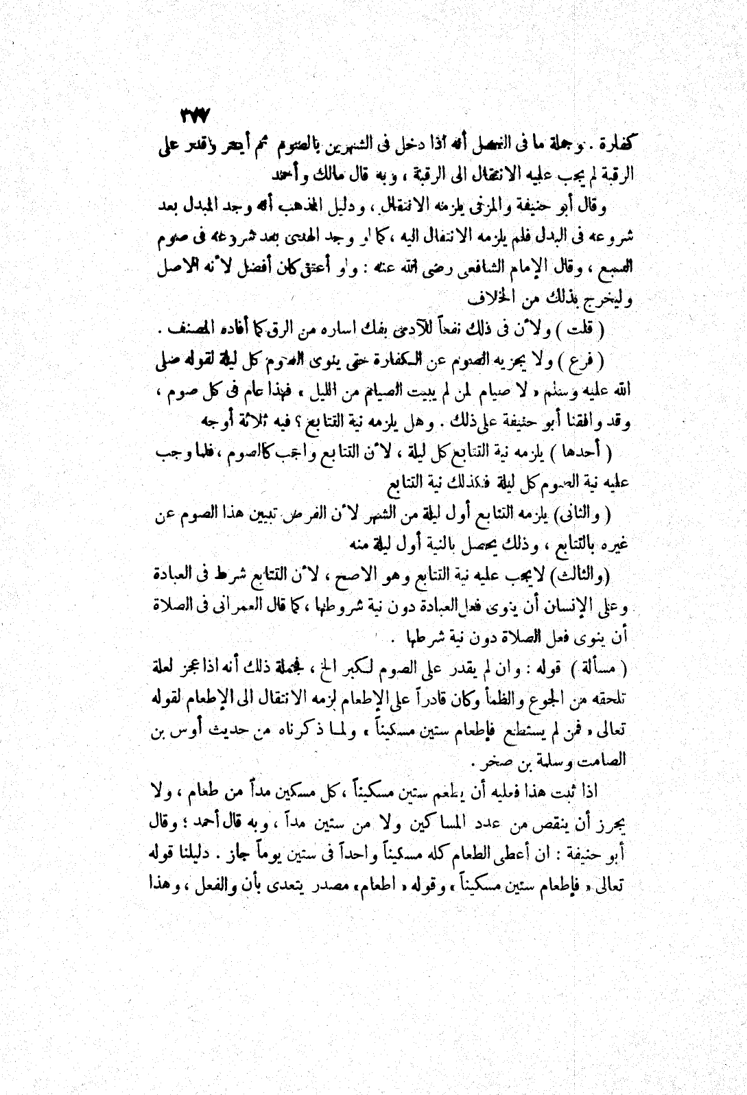 ولا يجزيه الصوم عن الكفارة حتى ينوى الصوم كل ليلة لقوله صَلَّى اللَّهُ عَلَيْهِ وَسَلَّمَ " لَا صِيَامَ لِمَنْ لَمْ يُبَيِّتْ الصِّيَامَ مِنْ الليل " فهذا عام في كل صوم، وقد وافقنا أبو حنيفة على ذلك.