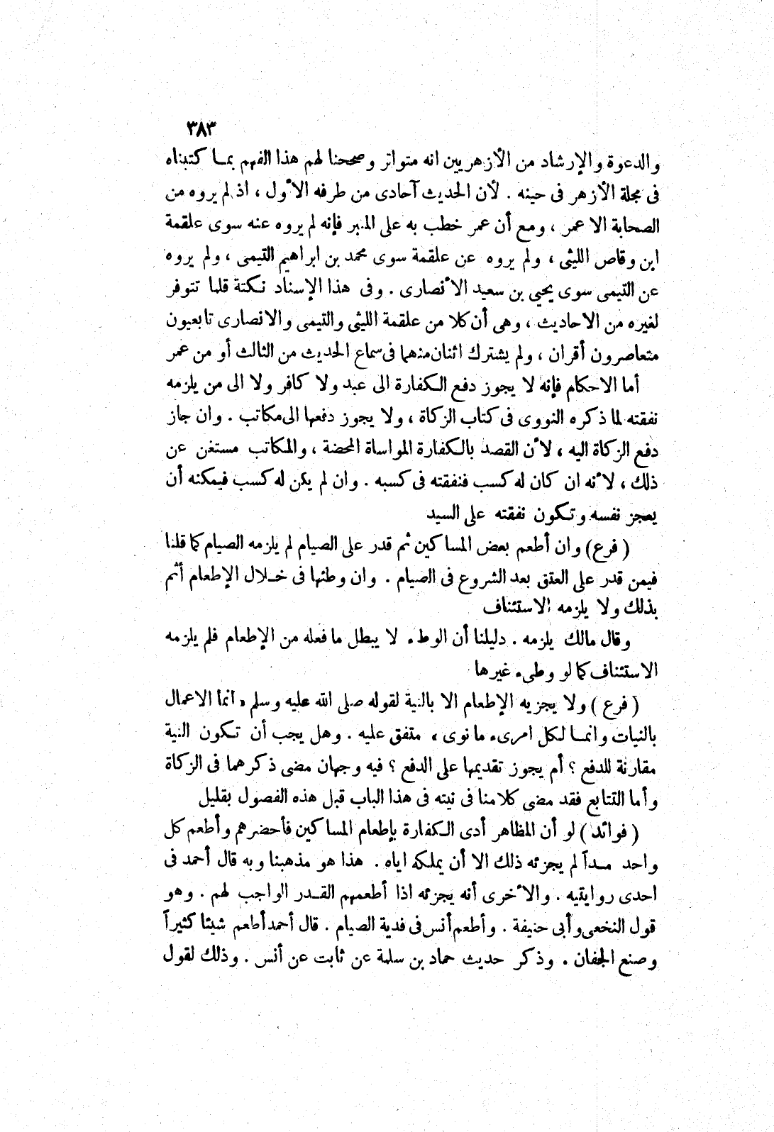 وفى هذا الاسناد نكتة قلما تتوفر لغيره من الاحاديث، وهى أن كلا من علقمة الليثى والتيمي والانصاري تابعيون متعاصرون أقران، ولم يشترك اثنان منهما في سماع الحديث من الثالث أو من عمر أما الاحكام فإنه لا يجوز دفع الكفارة إلى عبد ولا كافر ولا إلى من يلزمه نفقته لما ذكره النووي في كتاب الزكاة، ولا يجوز دفعها إلى مكاتب.