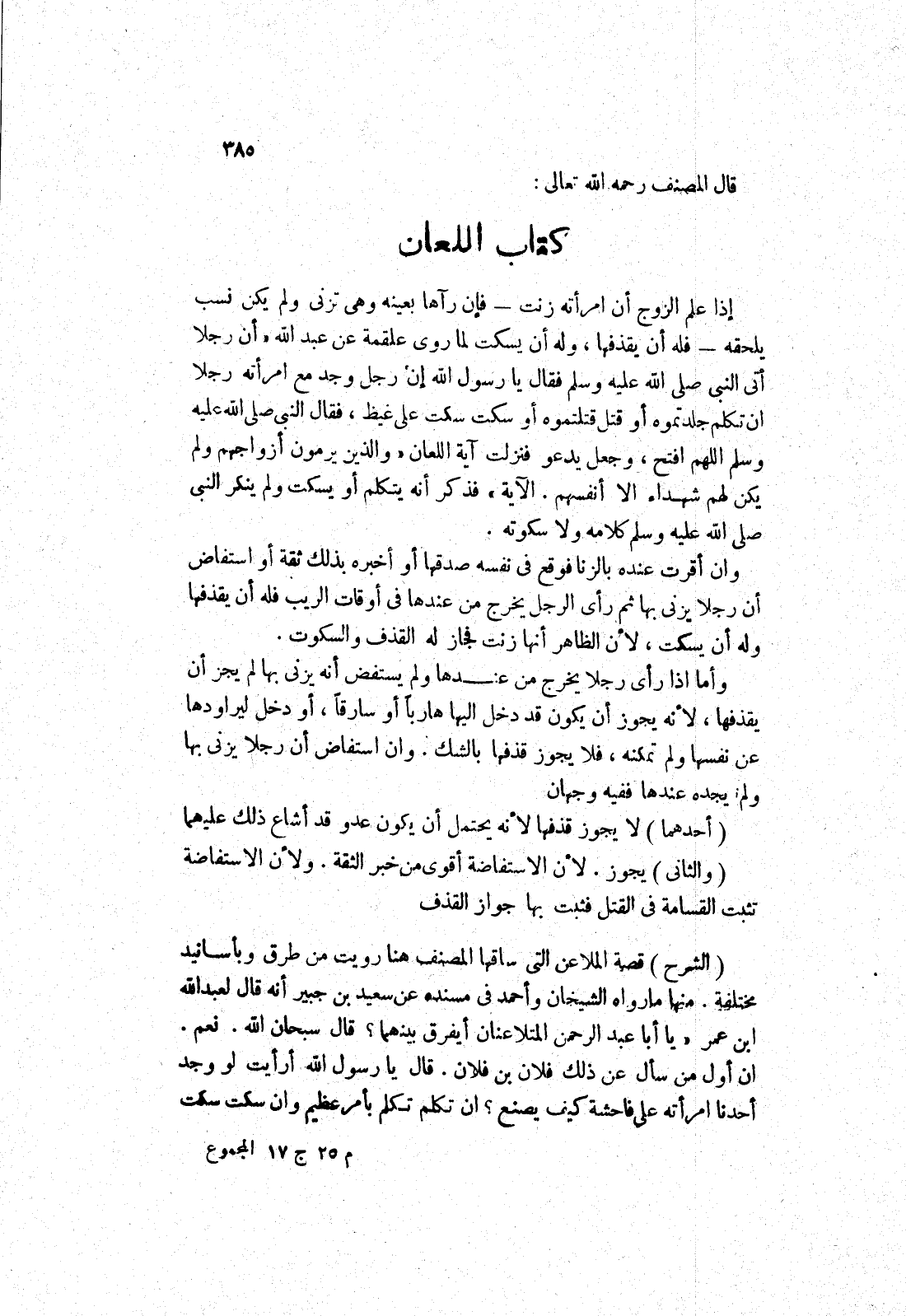 ولان الاستفاضة تثبت القسامة في القتل فثبت بها جواز القذف (الشرح) قصة الملاعن التى ساقها المصنف هنا رويت من طرق وبأسانيد مختلفة.