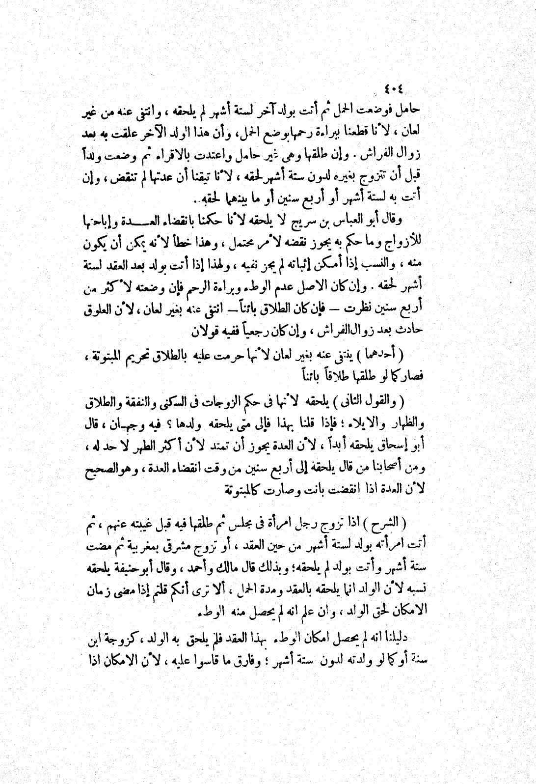 وإن طلقها وهى غير حامل واعتدت بالاقراء ثم وضعت ولدا قبل أن تتزوج بغيره لدون ستة أشهر لحقه، لانا تيقنا أن عدتها لم تنقض، وإن أتت به لستة أشهر أو أربع سنين أو ما بينهما لحقه.