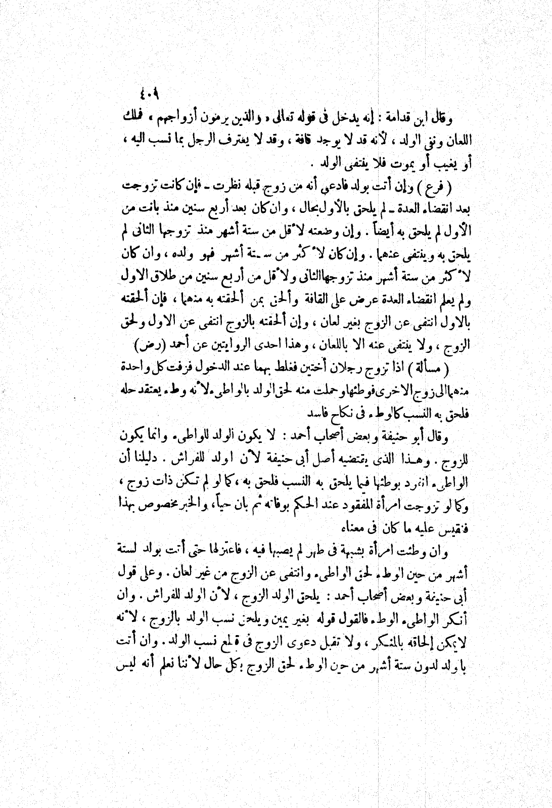 وإن كان لاكثر من ستة أشهر فهو ولده، وان كان لاكثر من ستة أشهر منذ تزوجها الثاني ولاقل من أربع سنين من طلاق الاول ولم يعلم انقضاء العدة عرض على القافة وألحق بمن ألحقته به منهما، فإن ألحقته بالاول انتفى عن الزوج بغير لعان، وإن ألحقته بالزوج انتفى عن الاول ولحق الزوج، ولا ينتفى عنه الا باللعان، وهذا احدى الروايتين عن أحمد (رض) (مسألة) إذا تزوج رجلان أختين فغلط بهما عند الدخول فزفت كل واحدة منهما إلى زوج الاخرى فوطئها وحملت منه لحق الولد بالواطئ لانه وطئ يعتقد حله فلحق به النسب كالوطئ في نكاح فاسد وقال أبو حنيفة وبعض أصحاب أحمد: لا يكون الولد للواطئ وانما يكون للزوج.