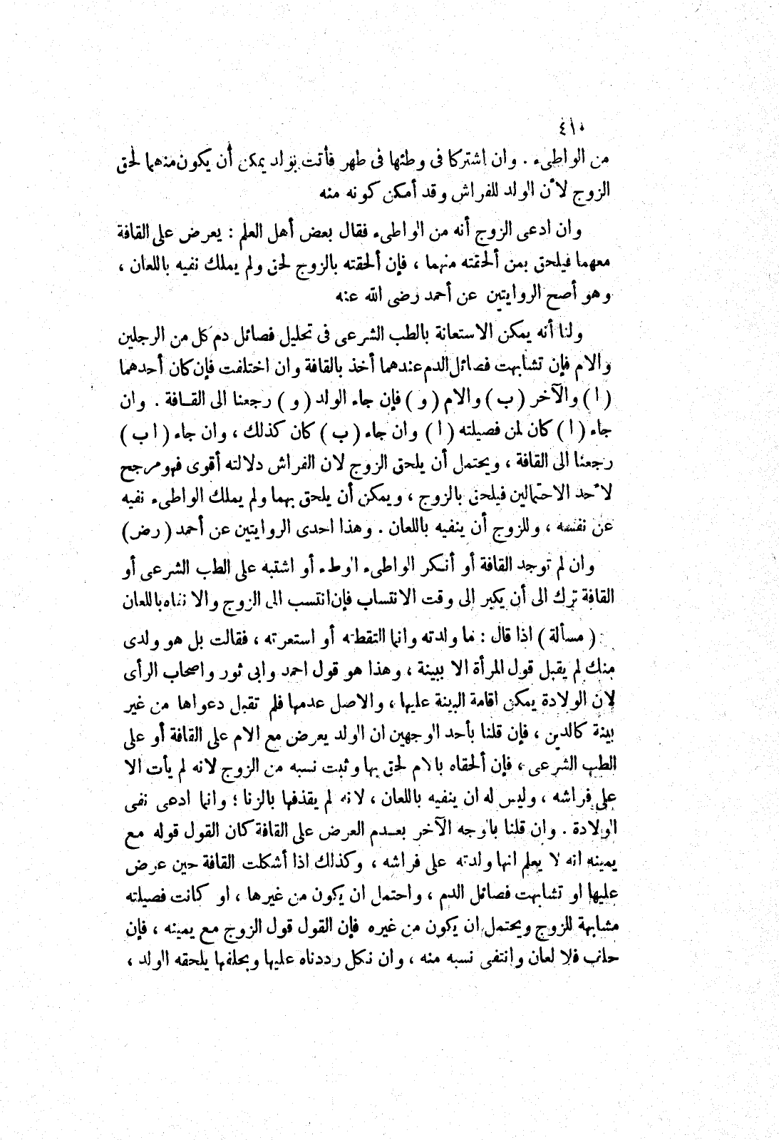 وهذا احدى الروايتين عن أحمد (رض) وان لم توجد القافة أو أنكر الواطئ الوطئ أو اشتبه على الطب الشرعي أو