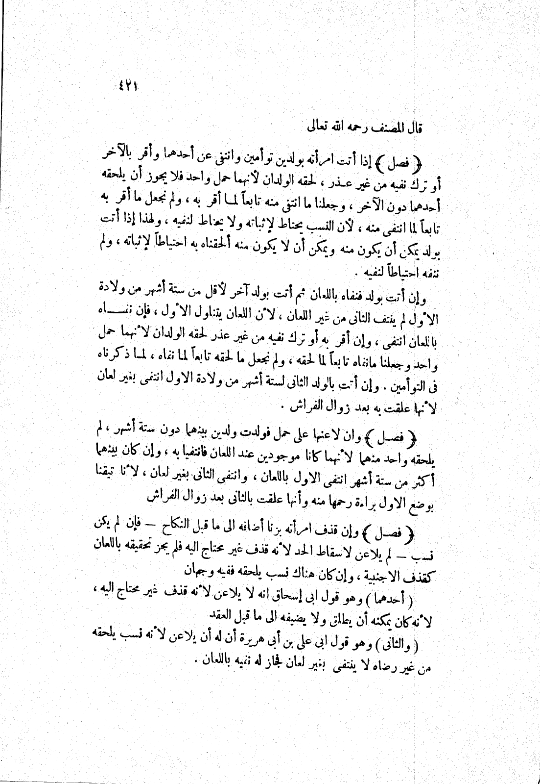 إذا أتت امرأته بولدين توأمين وانتفى عن أحدهما وأقر بالآخر أو ترك نفيه من غير عذر، لحقه الولدان لانهما حمل واحد فلا يجوز أن يلحقه أحدهما دون الآخر، وجعلنا ما انتفى منه تابعا لما أقر به، ولم نجعل ما أقر به تابعا لما انتفى منه، لان النسب يحتاط لاثباته ولا يحتاط لنفيه، ولهذا إذا أتت بولد يمكن أن يكون منه ويمكن أن لا يكون منه ألحقناه به احتياطا لاثباته، ولم ننفه احتياطا لنفيه.