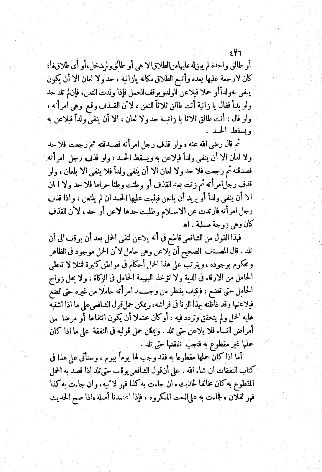 أو طالق واحدة لم يبق له عليها من الطلاق الا هي أو طالق ولم يدخل، أو أي طلاق ما، كان لا رجعة عليها بعده وأتبع الطلاق مكانه يا زانية، حد ولا لعان الا أن يكون ينفى به ولدا أو حملا فيلاعن للولد يوقف للحمل فإذا ولدت التعن، فإن لم تلد حد ولو بدأ فقال يا زانية أنت طالق ثلاثا التعن، لان القذف وقع وهى أمرأته، ولو قال: أنت طالق ثلاثا يا زانية حد ولا لعان، الا أن ينفى ولد افيلاعن به ويسقط الحد.