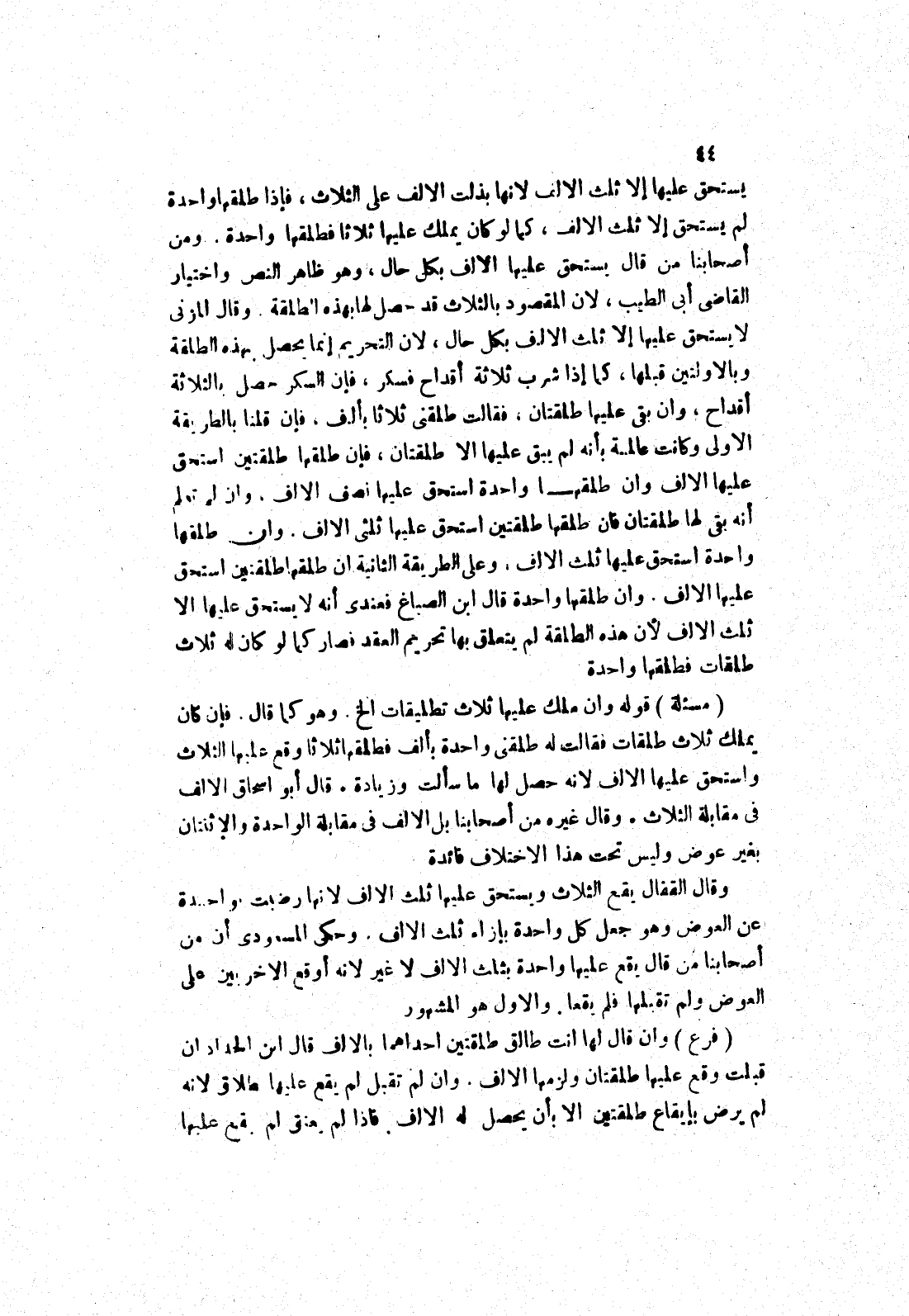 وان طلقها واحدة قال ابن الصباغ فعندي أنه لا يستحق عليها الا ثلث الالف لان هذه الطلقة لم يتعلق بها تحريم العقد فصار كما لو كان له ثلاث طلقات فطلقها واحدة (مسألة) قوله وان ملك عليها ثلاث تطليقات الخ.