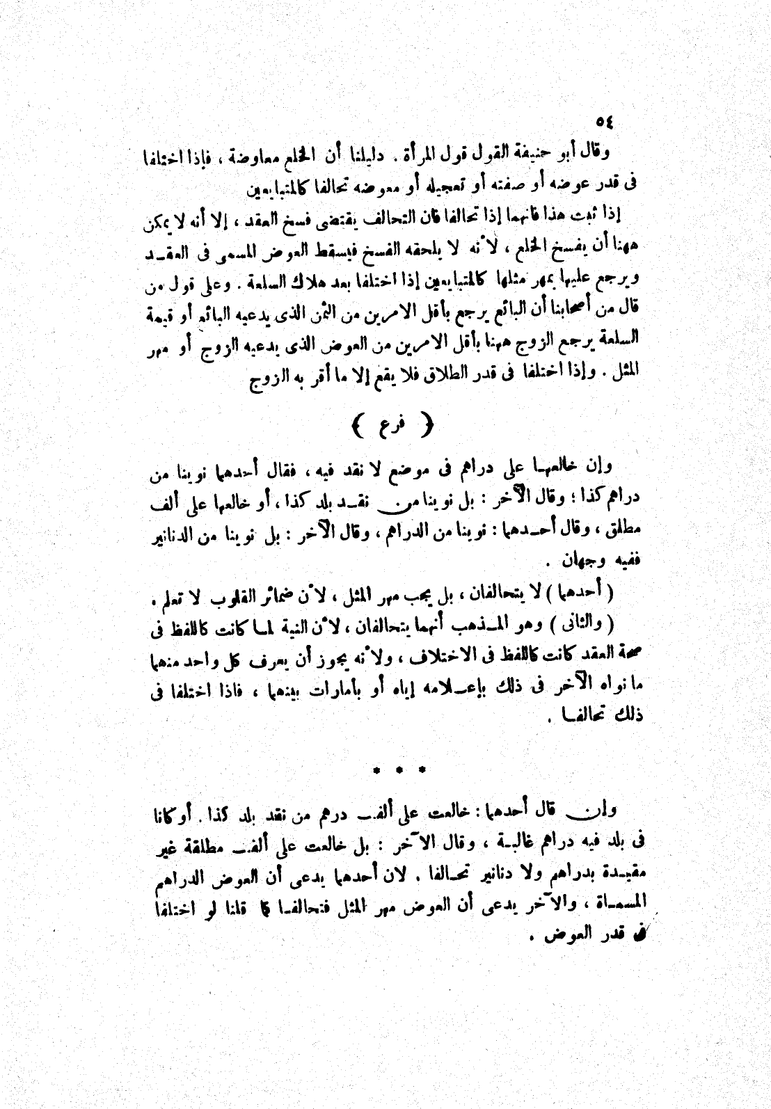 وعلى قول من قال من أصحابنا أن البائع يرجع بأقل الامرين من الثمن الذى يدعيه البائع أو قيمة السلعة يرجع الزوج ههنا بأقل الامرين من العوض الذى يدعيه الزوج أو مهر