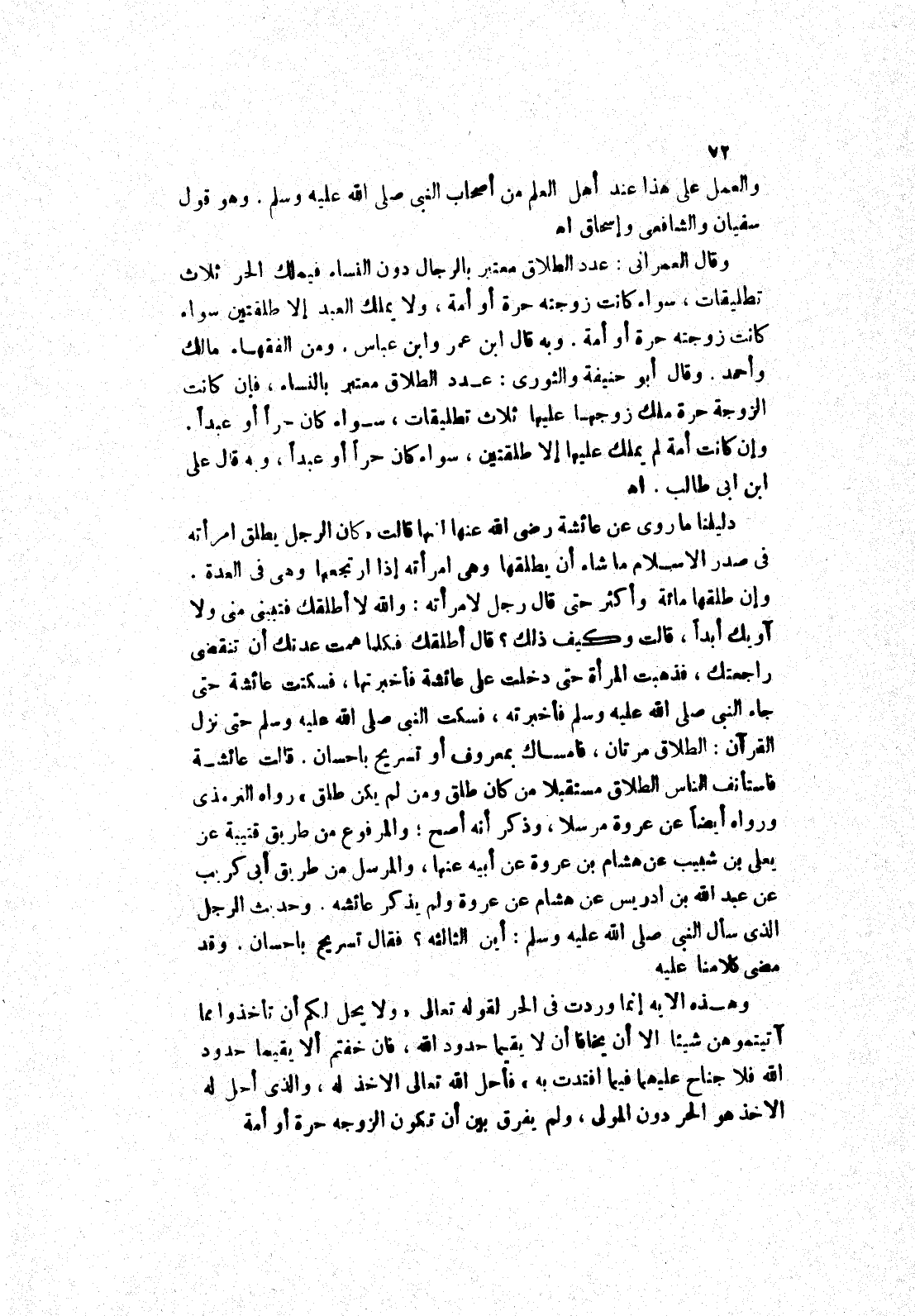 قالت عائشة فاستأنف الناس الطلاق مستقبلا من كان طلق ومن لم يكن طلق " رواه الترمذي ورواه أيضا عن عروة مرسلا، وذكر أنه أصح، والمرفوع من طريق قتيبة عن يعلى بن شبيب عن هشام بن عروة عن أبيه عنها، والمرسل من طريق أبى كريب عن عبد الله بن ادريس عن هشام عن عروة ولم يذكر عائشة.