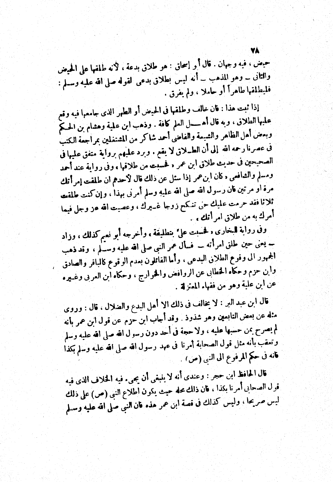 وفى رواية للبخاري " فحسبت على بتطليقة " وأخرجه أبو نعيم كذلك " وزاد - يعنى حين طلق امرأته - فسأل عمر النبي صلى الله عليه وسلم، وقد ذهب الجمهور إلى وقوع الطلاق البدعى، وأما القائلون بعدم الوقوع كالباقر والصادق وابن حزم وحكاه الخطابى عن الروافض والخوارج، وحكاه ابن العربي وغيره عن ابن علية وهو من فقهاء المعتزلة.