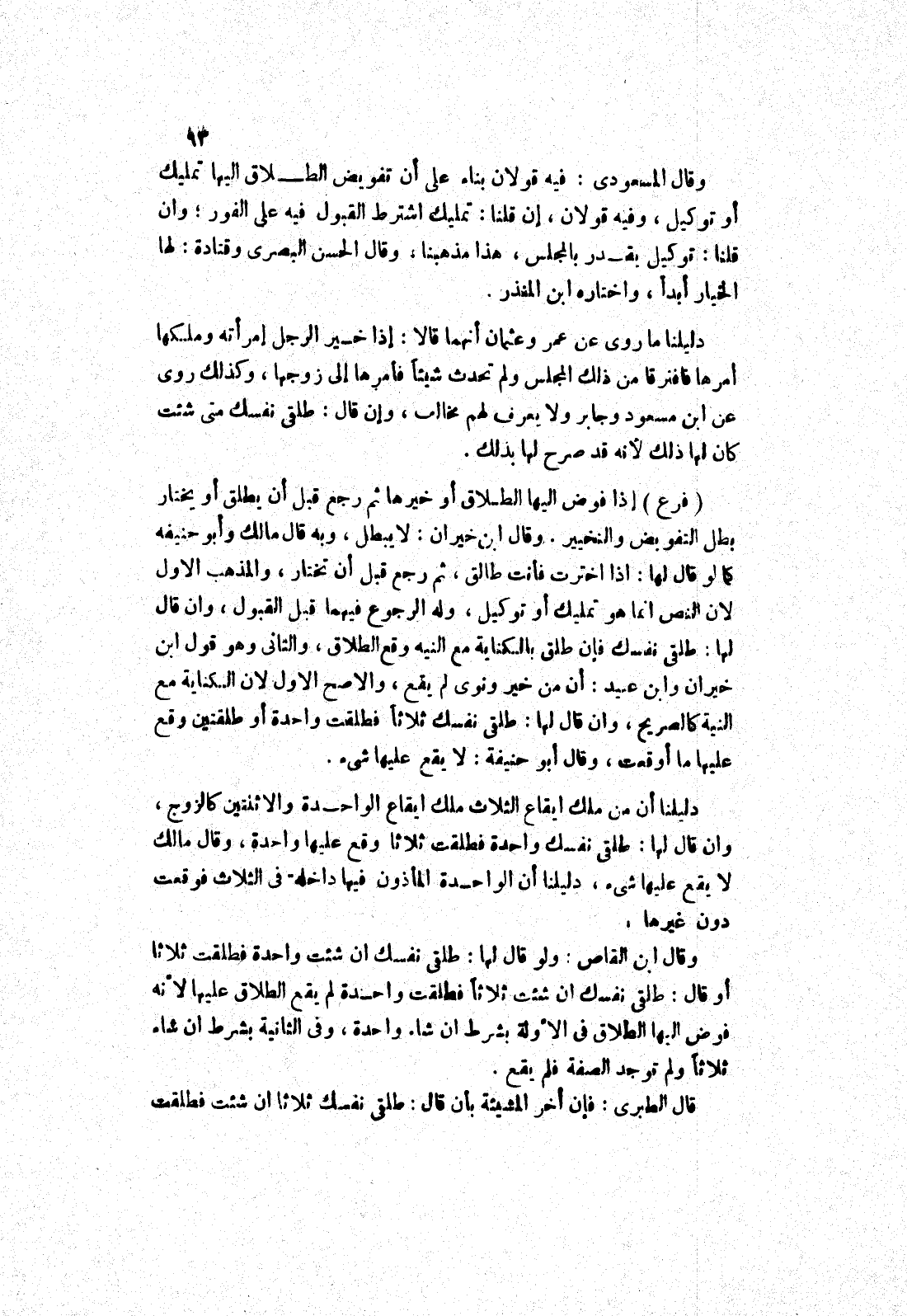 أو توكيل، وفيه قولان، إن قلنا: تمليك اشترط القبول فيه على الفور، وان قلنا: توكيل بقدر بالمجلس، هذا مذهبنا، وقال الحسن البصري وقتادة: لها الخيار أبدا، واختاره ابن المنذر.