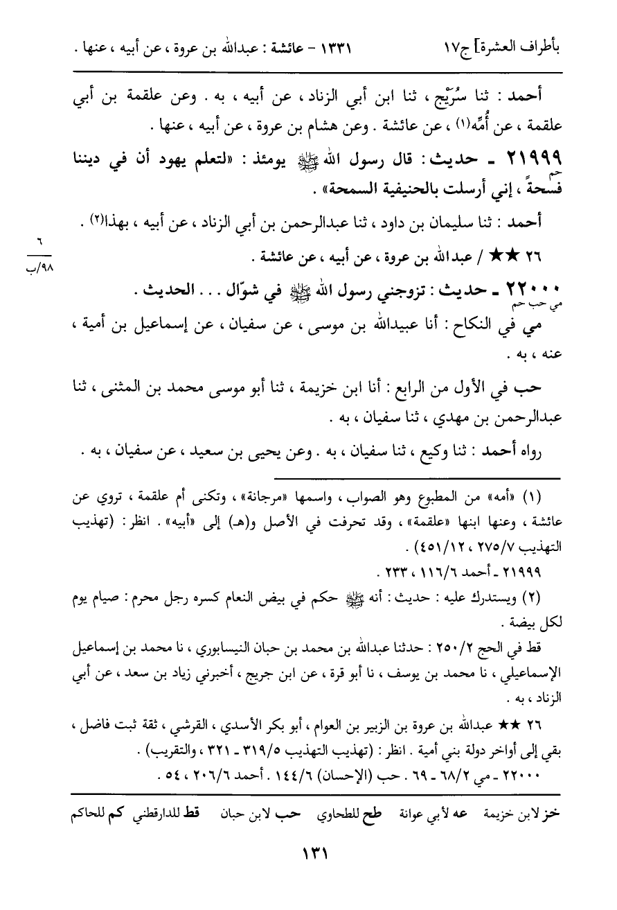 ـ عبد الله بن عروة، عن أبيه، عن عائشة.