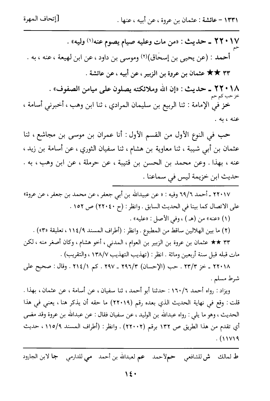 حب في النوع الأول من القسم الأول: أنا عمران بن موسى بن مجاشع، ثنا عثمان بن أبي شيبة، ثنا معاوية بن هشام، ثنا سفيان الثوري، عن أسامة بن زيد، عنه، بهذا. وعن محمد بن الحسن بن قتيبة، عن حرملة، عن ابن وهب، به.