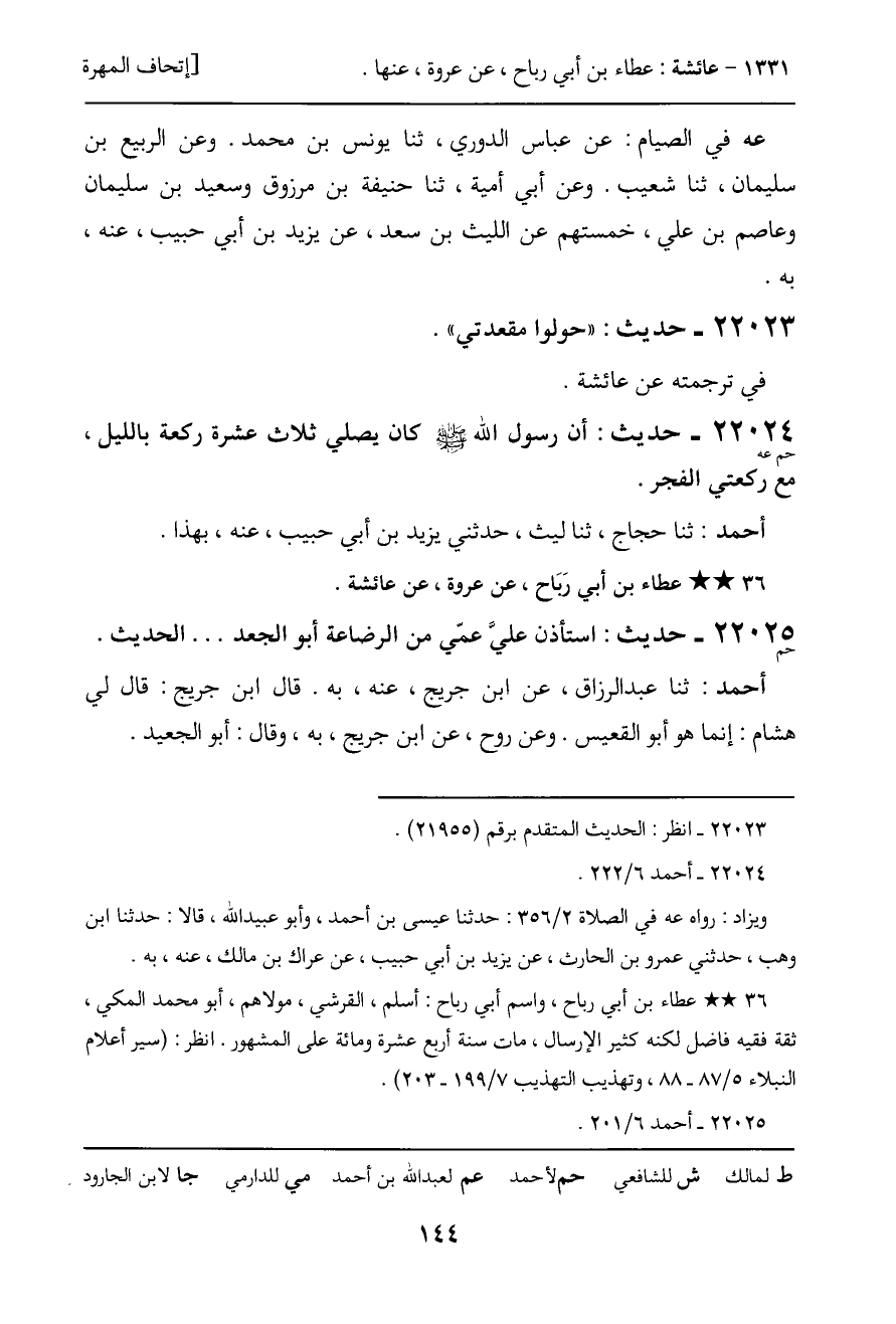 ـ عطاء بن أبي رَبَاح، عن عروة، عن عائشة.