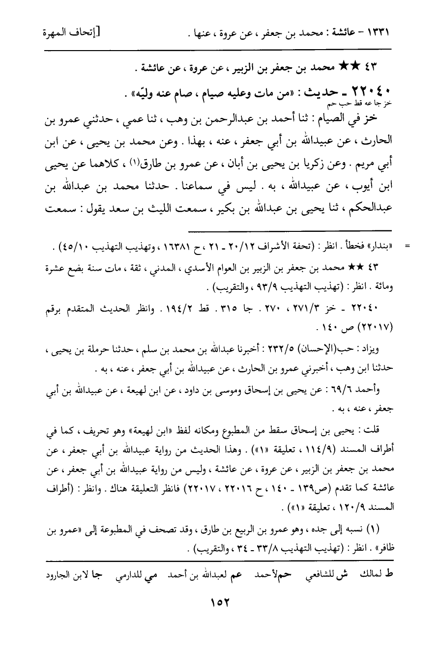 22040 - حديث (خز جا عه قط حب حم) : "من مات وعليه صيام، صام عنه وليه".