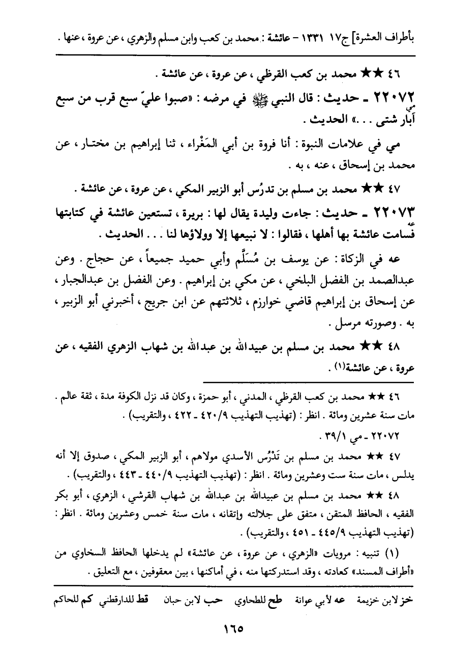 ـ محمد بن مسلم بن عبيد الله بن عبد الله بن شهاب الزهري الفقيه، عن عروة، عن عائشة.
