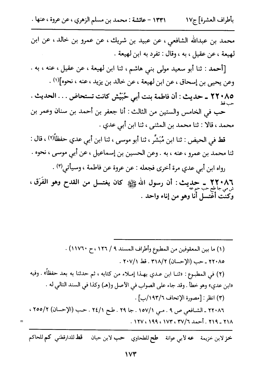 22085 - حديث (حب قط) : إن فاطمة بنت أبي حُبَيشْ كانت تستحاض ... الحديث.