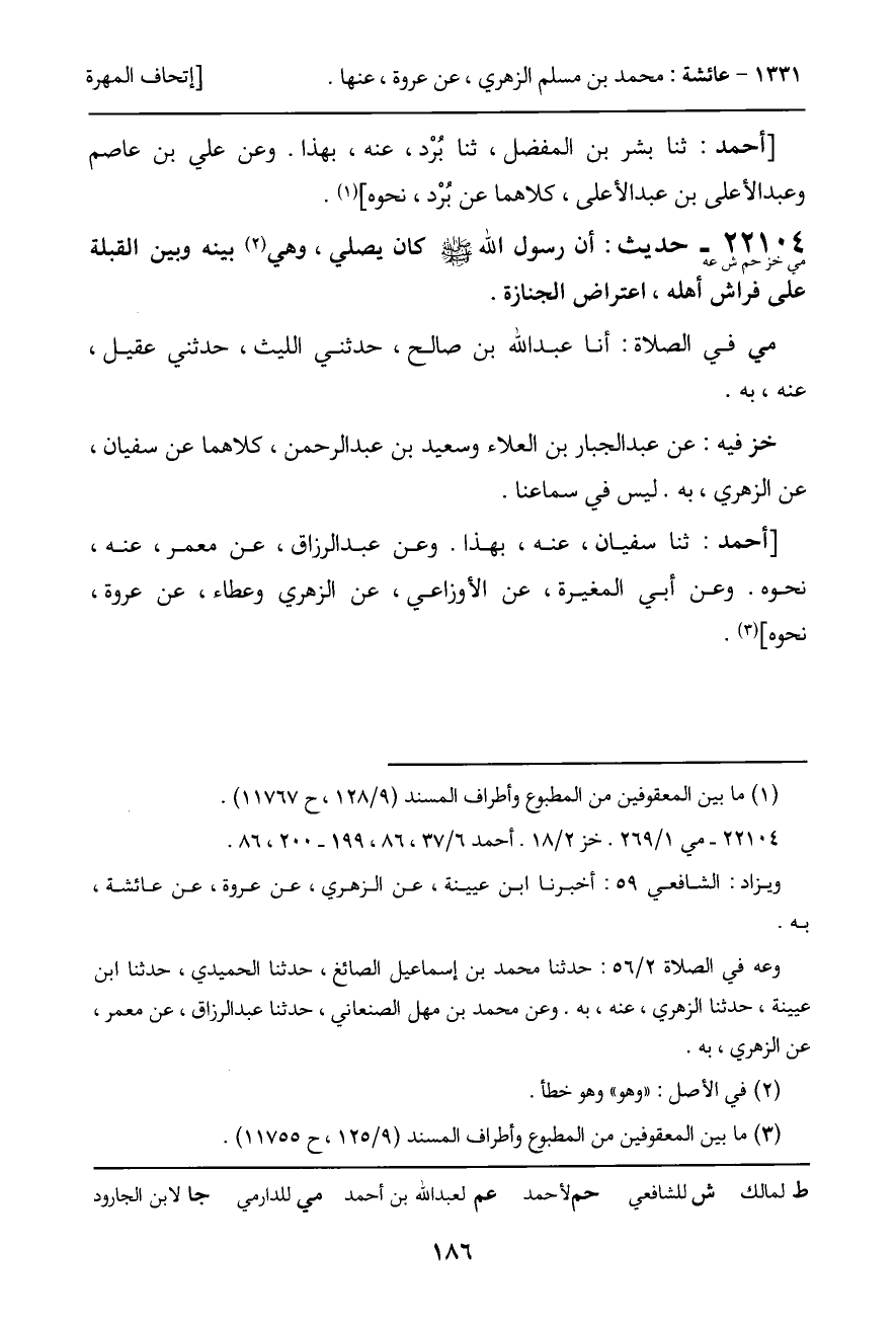 22104 - حديث (مي خز حم ش عه) : أن رسول الله - صَلَّى اللَّهُ عَلَيْهِ وَسَلَّمَ - كان يصلي، وهي بينه وبين القبلة على فراش أهله، اعتراض الجنازة.