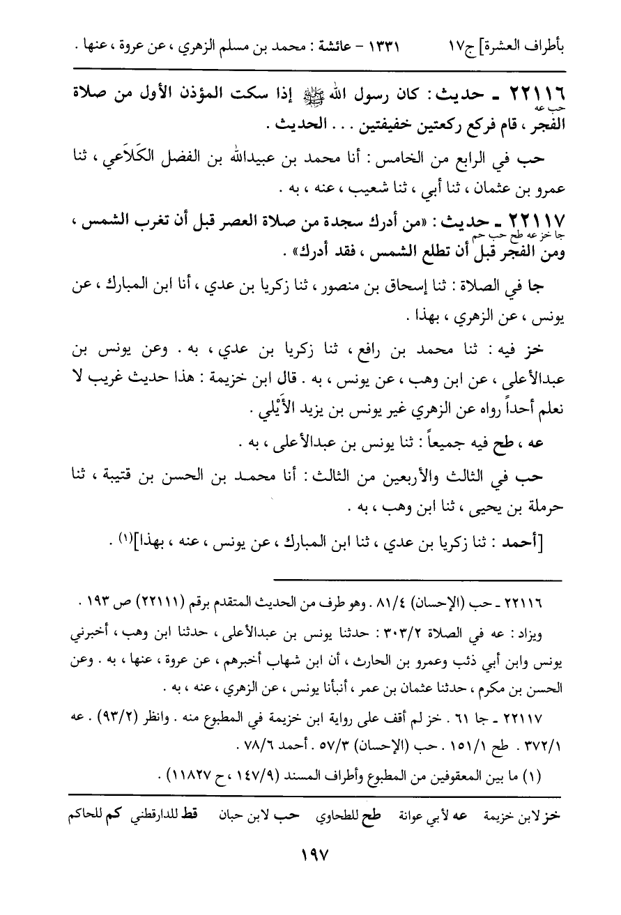 22117 - حديث (جا خز عه طح حب حم) : "من أدرك سجدة من صلاة العصر قبل أن تغرب الشمس، ومن الفجر قبل أن تطلع الشمس، فقد أدرك".