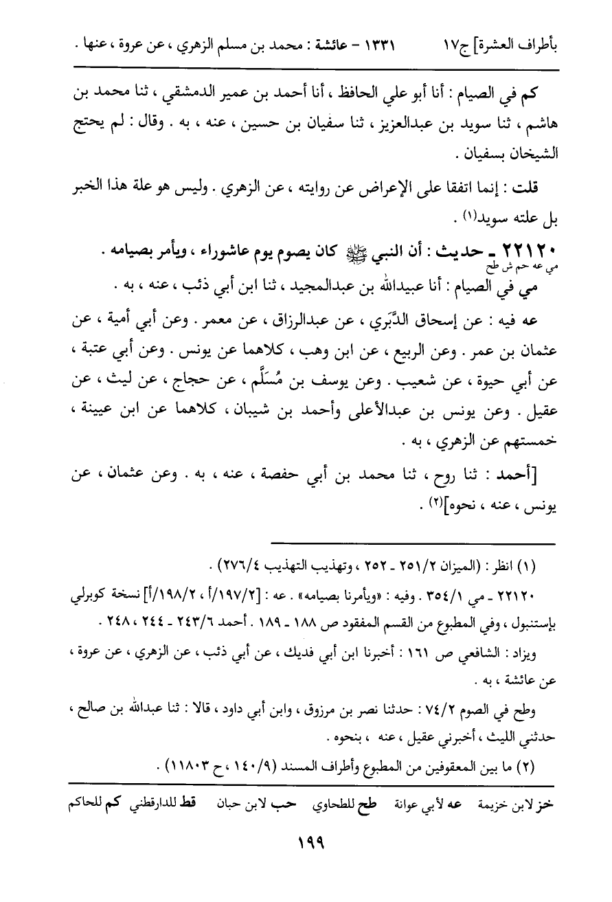 22120 - حديث (مي عه حم ش طح) : أن النبي - صَلَّى اللَّهُ عَلَيْهِ وَسَلَّمَ - كان يصوم يوم عاشوراء، ويأمر بصيامه.