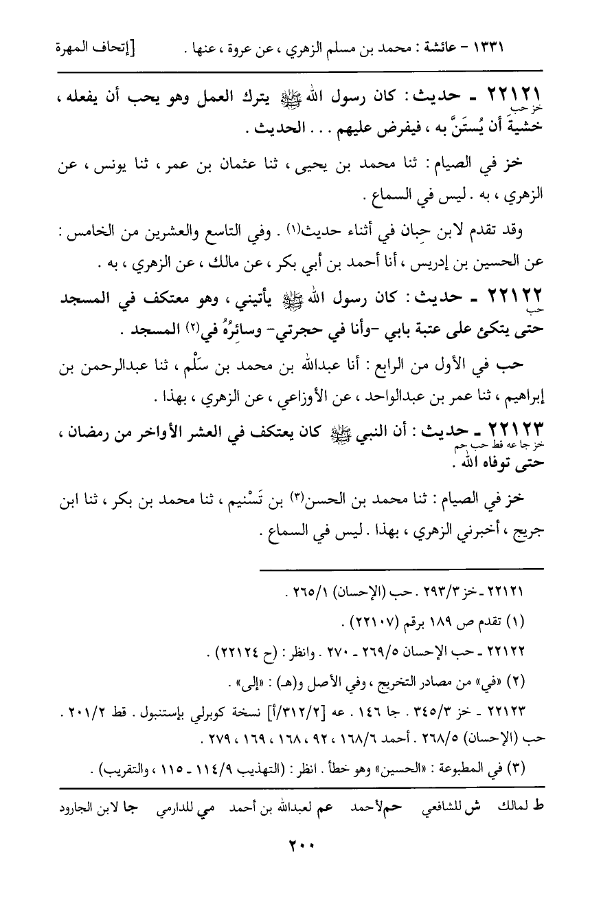 22123 - حديث (خز جا عه قط حب حم) : أن النبي - صَلَّى اللَّهُ عَلَيْهِ وَسَلَّمَ - كان يعتكف في العشر الأواخر من رمضان، حتى توفاه الله.