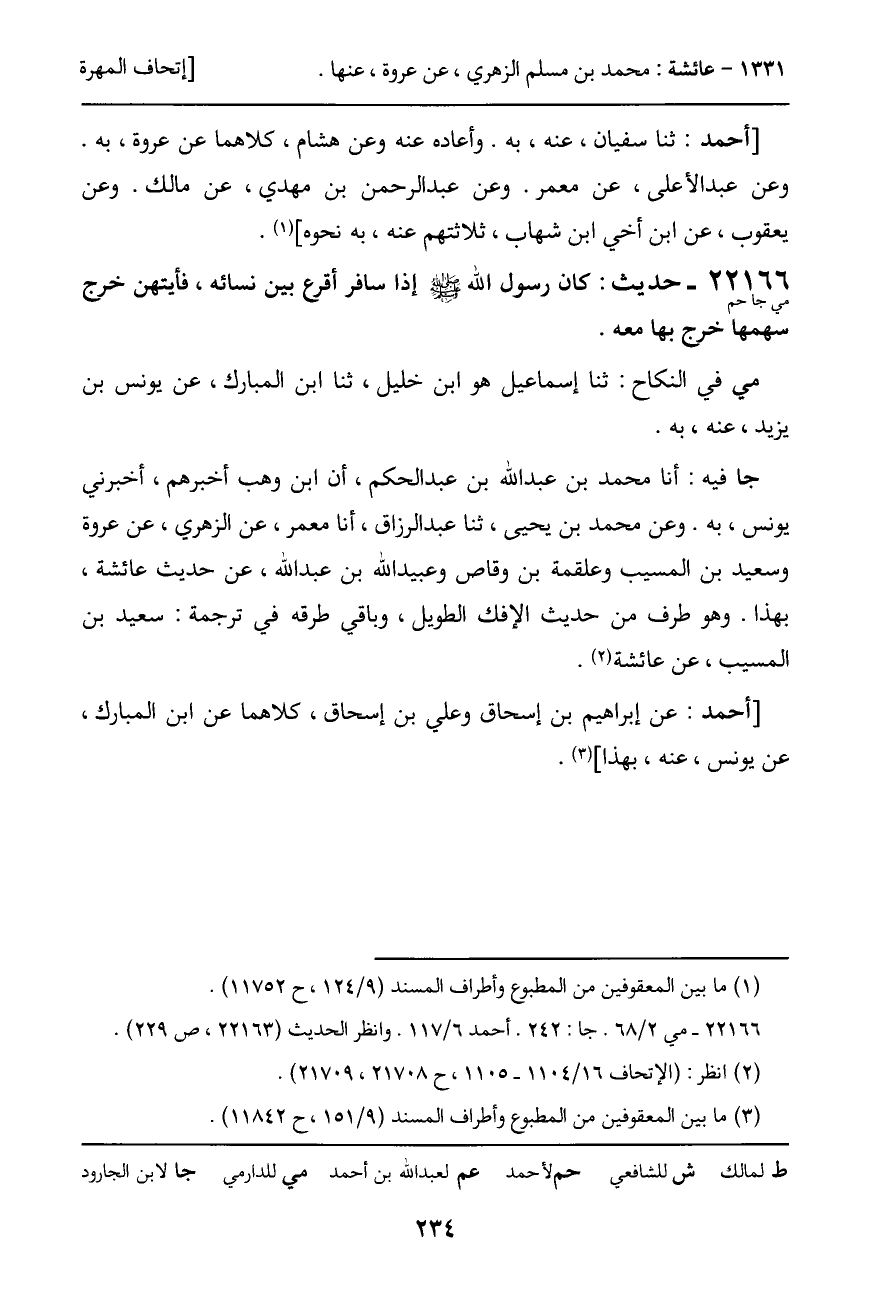 22166 - حديث (مي جا حم) : كان رسول الله - صَلَّى اللَّهُ عَلَيْهِ وَسَلَّمَ - إذا سافر أقرع بين نسائه، فأيتهن خرج سهمها خرج بها معه.