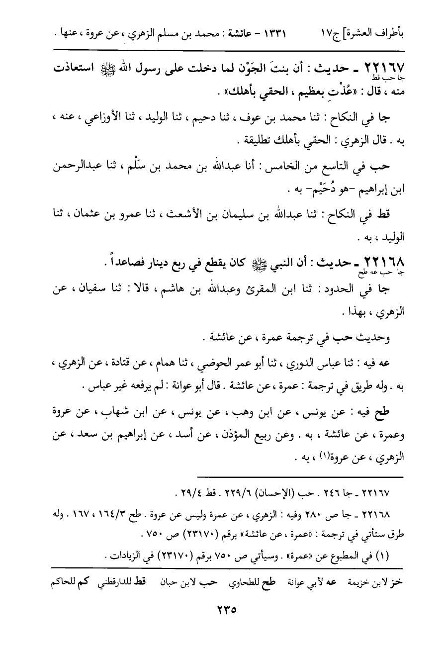 عه فيه: ثنا عباس الدوري، ثنا أبو عمر الحوضي، ثنا همام، عن قتادة، عن الزهري، به. وله طريق في ترجمة: عمرة، عن عائشة. قال أبو عوانة: لم يرفعه غير عباس.