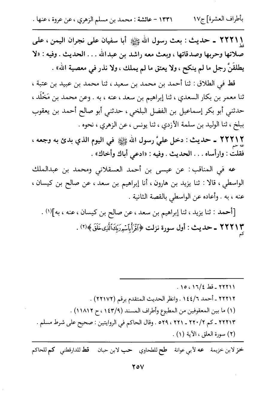 22213 - حديث (كم) : أول سورة نزلت (اقْرَأْ بِاسْمِ رَبِّكَ الَّذِي خَلَقَ) .
