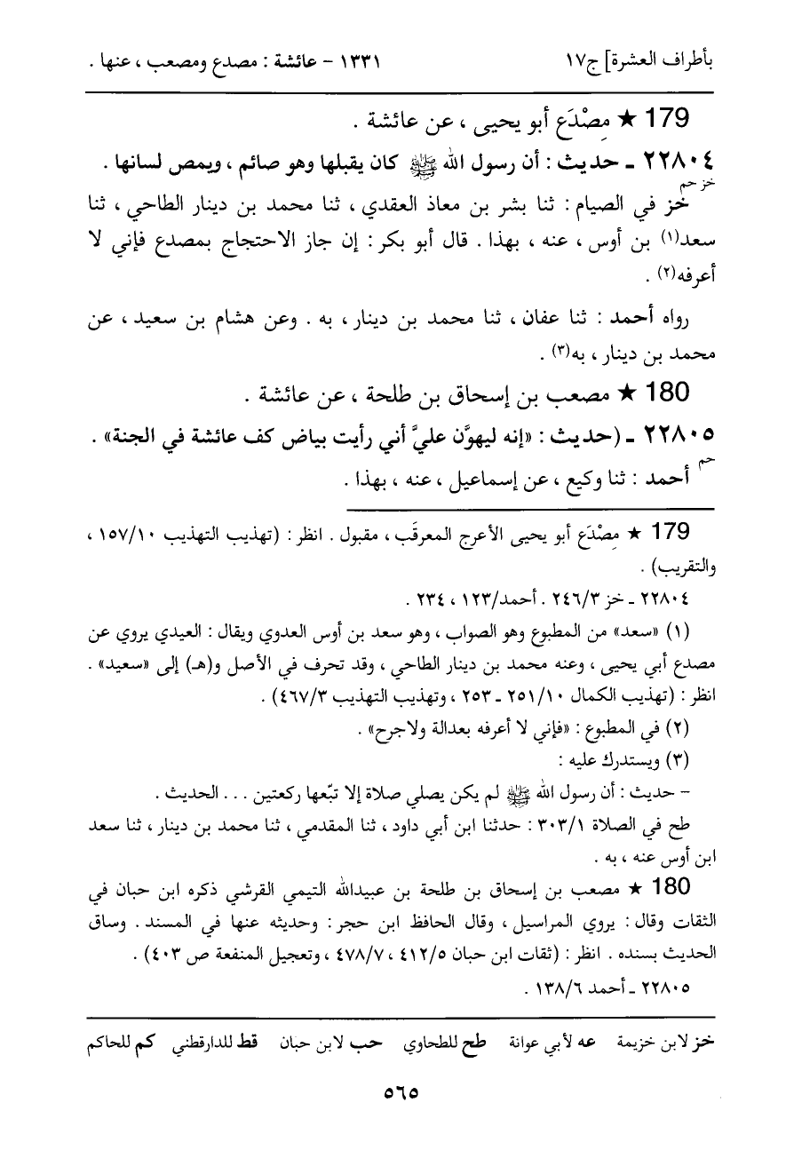 ـ مصعب بن إسحاق بن طلحة، عن عائشة.
