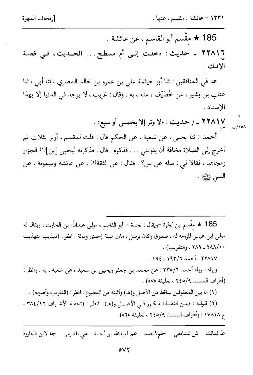 22817 - حديث (حم) : "لا وتر إلا بخمس أو سبع".