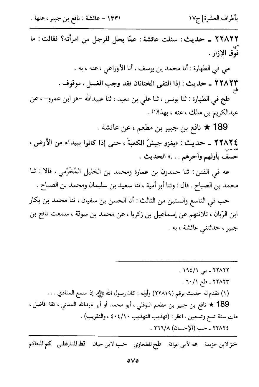 22823 - حديث (طح) : إذا التقى الختانان فقد وجب الغسل، موقوف.