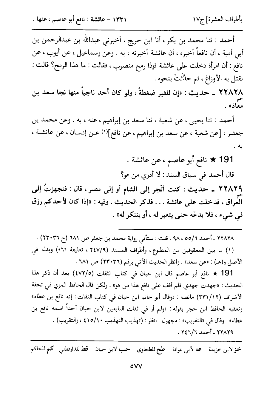 أحمد: ثنا يحيى، عن شعبة، ثنا سعد بن إبراهيم، عنه، به. وعن محمد بن جعفر، [عن شعبة، عن سعد بن إبراهيم، عن نافع] عن إنسان، عن عائشة، به.