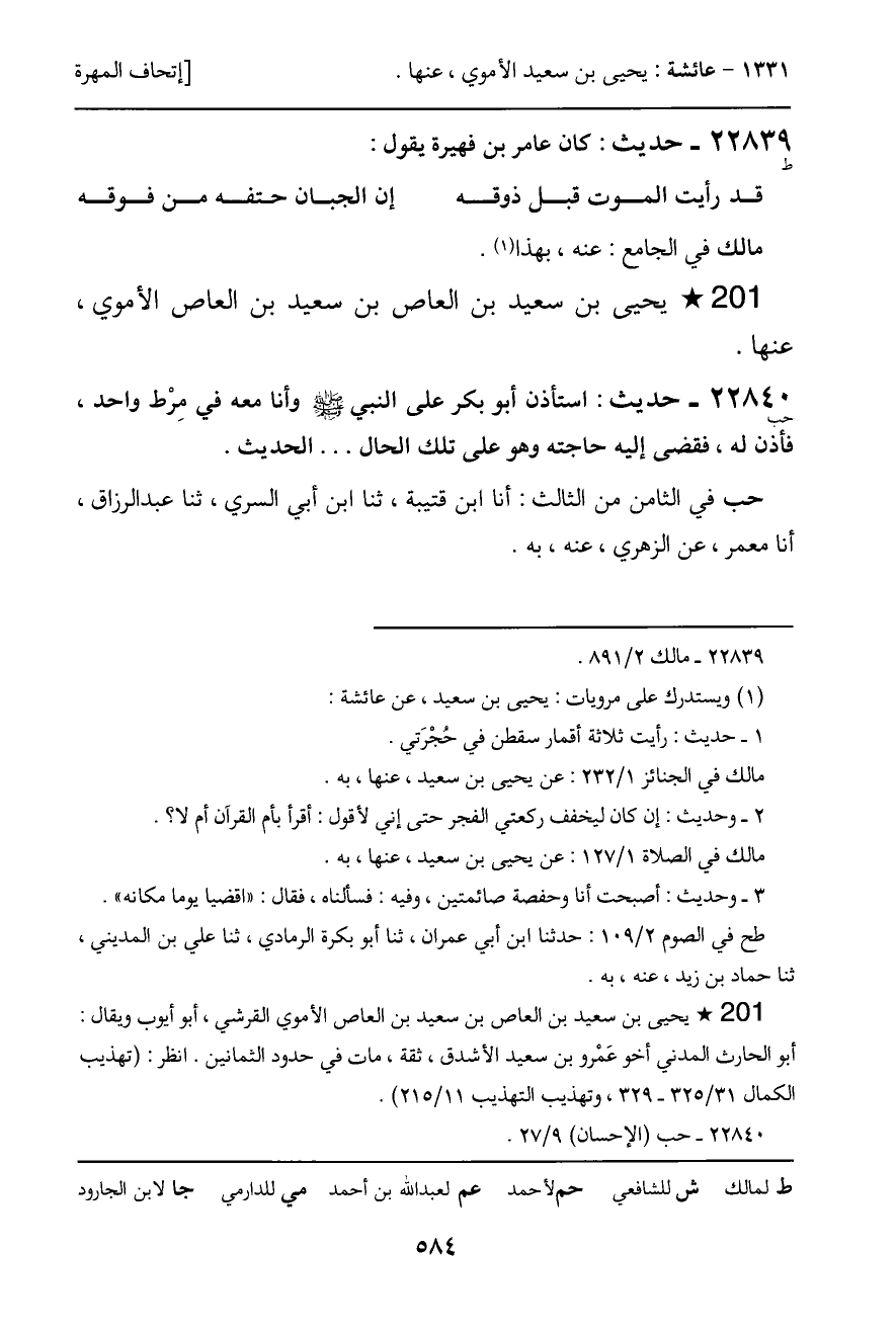22839 - حديث (ط) : كان عامر بن فهيرة يقول: